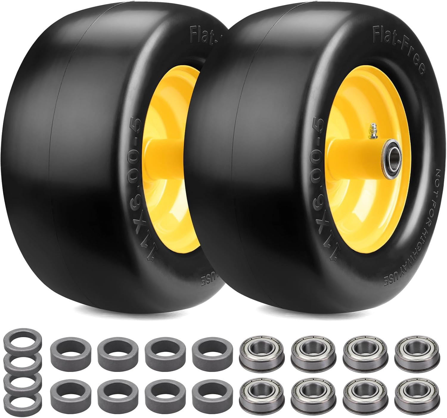 11X6.00-5 Flat Free Tire, 2 Pcs 11X6.00-5 Tires for Zero Turn Mower, 11X6-5 Soli