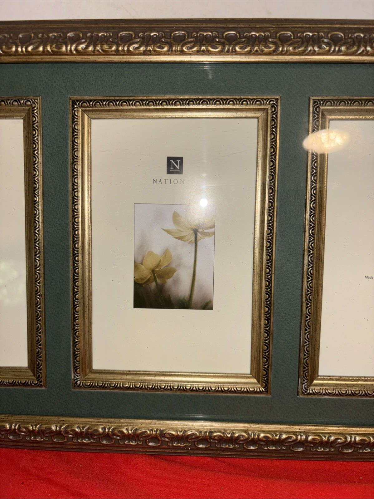 4x6 3-Opening National Collage Picture Frame, Gold - Slate Green Matt