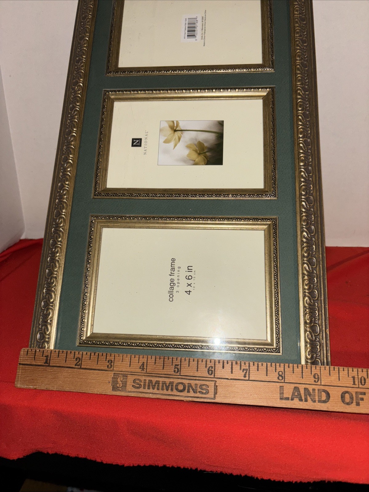 как выглядит 4x6 3-Opening National Collage Picture Frame, Gold - Slate Green Matt фото