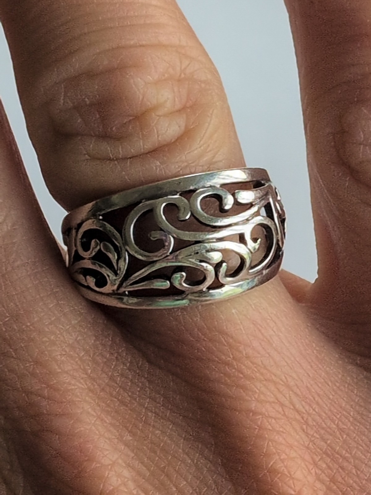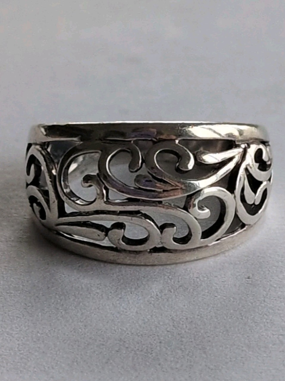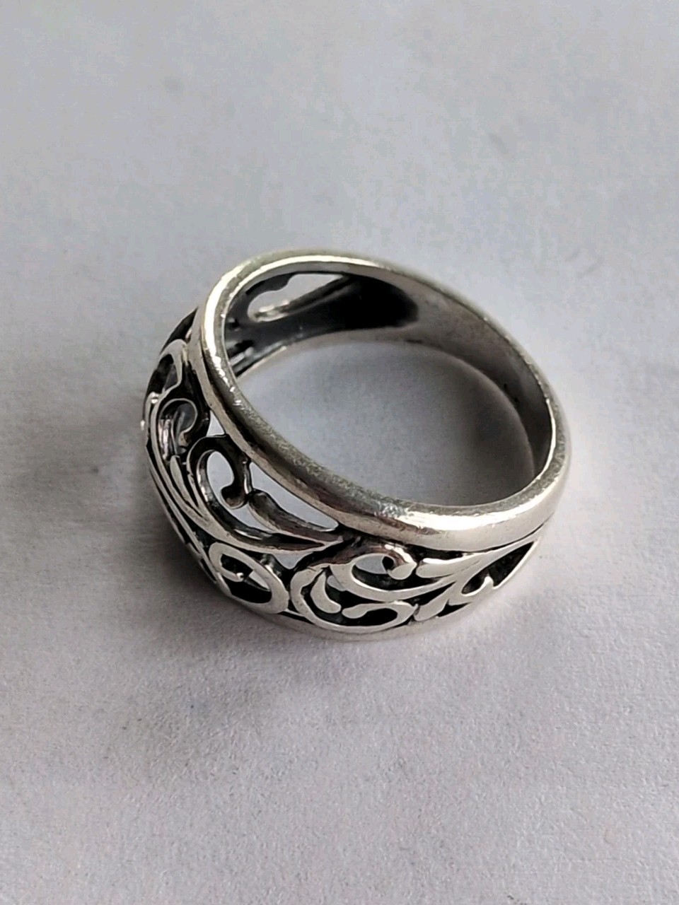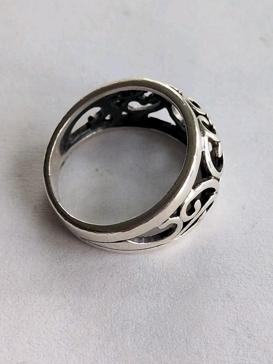 как выглядит VINTAGE STERLING SILVER OPENWORK SWIRL DOMED RING 925 SIZE 7 4.0 GRAMS фото
