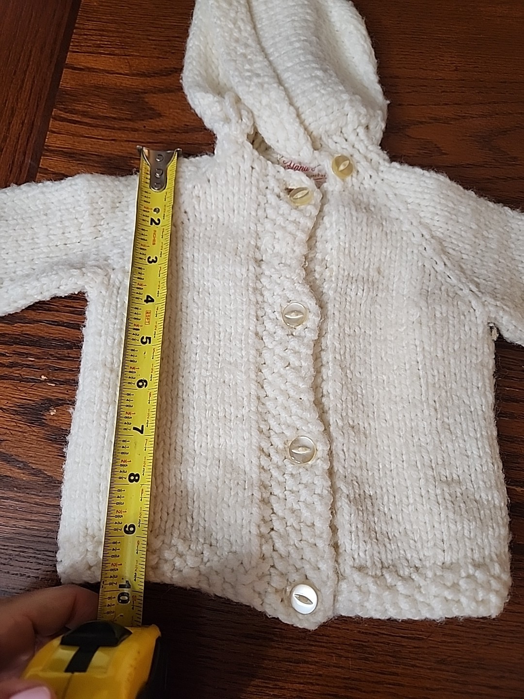 Vintage 60s Hand Crochet Baby Sweater Infant Ivory White Blue Mittens Cardigan