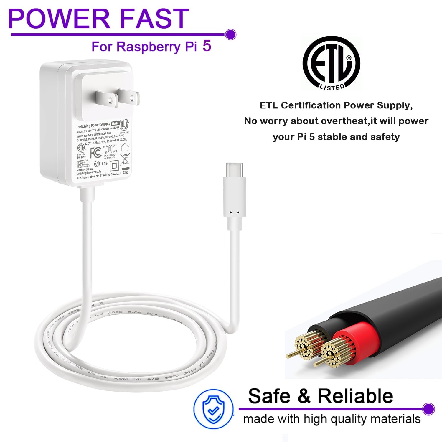 Black GaN 27W PD Case Kit for Raspberry Pi 5 RUX Cooler 5.1V 5A Power Supply
