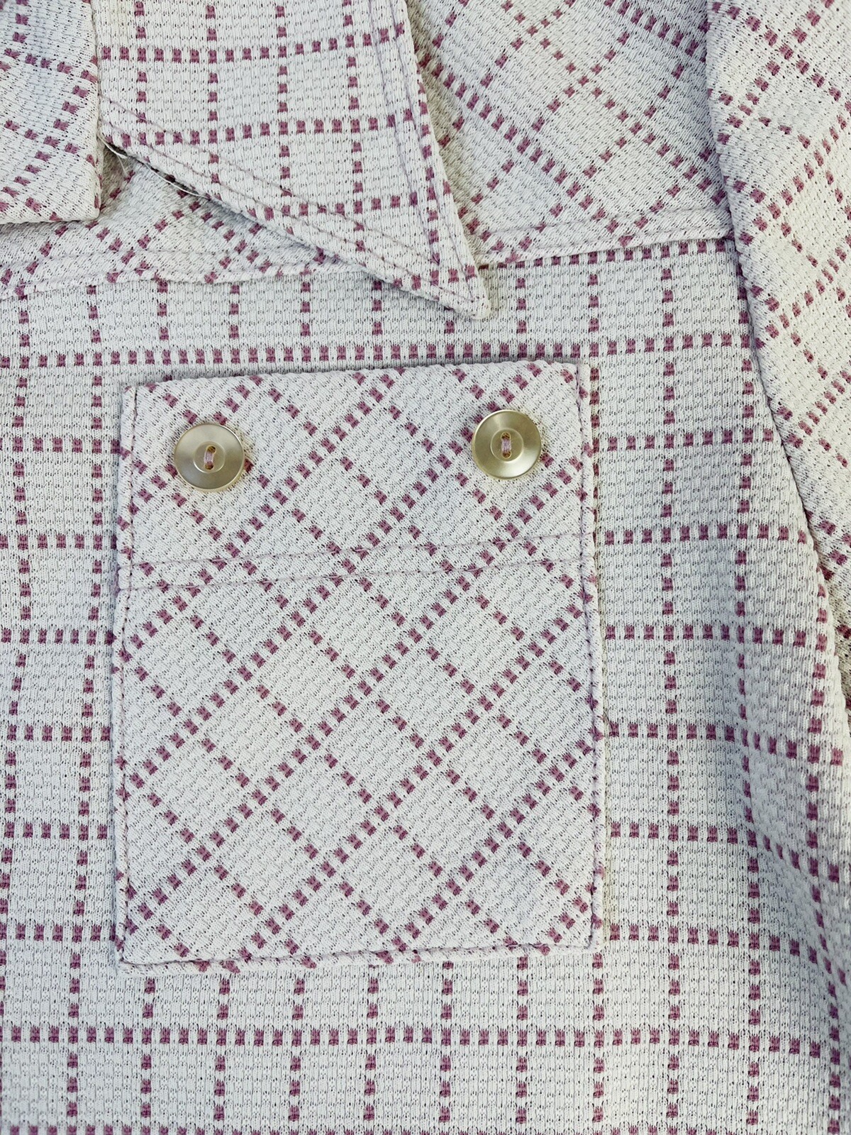 Vintage 70s Womens Large Plaid Checks Knit Wide Leg Pants Button Shirt Set Disco