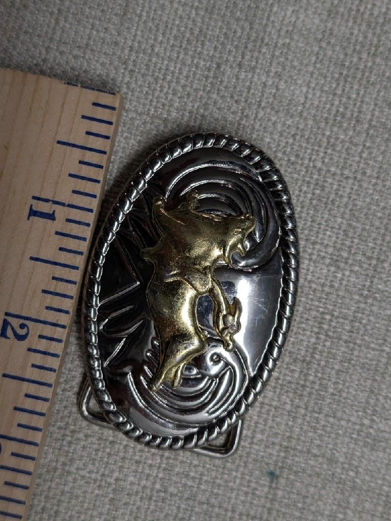vintage WESTERN belt buckle CHROME cowboy BULL RIDING rodeo