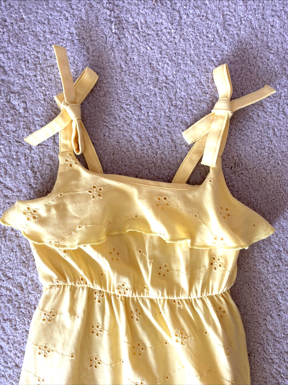 как выглядит Cat Jack Girls Dress Yellow Eyelet Sleeveless Size XS 4-5 фото
