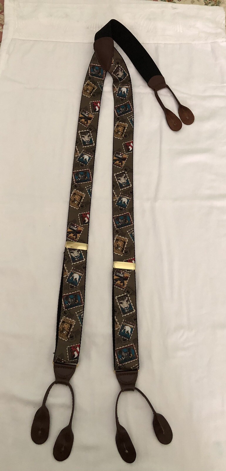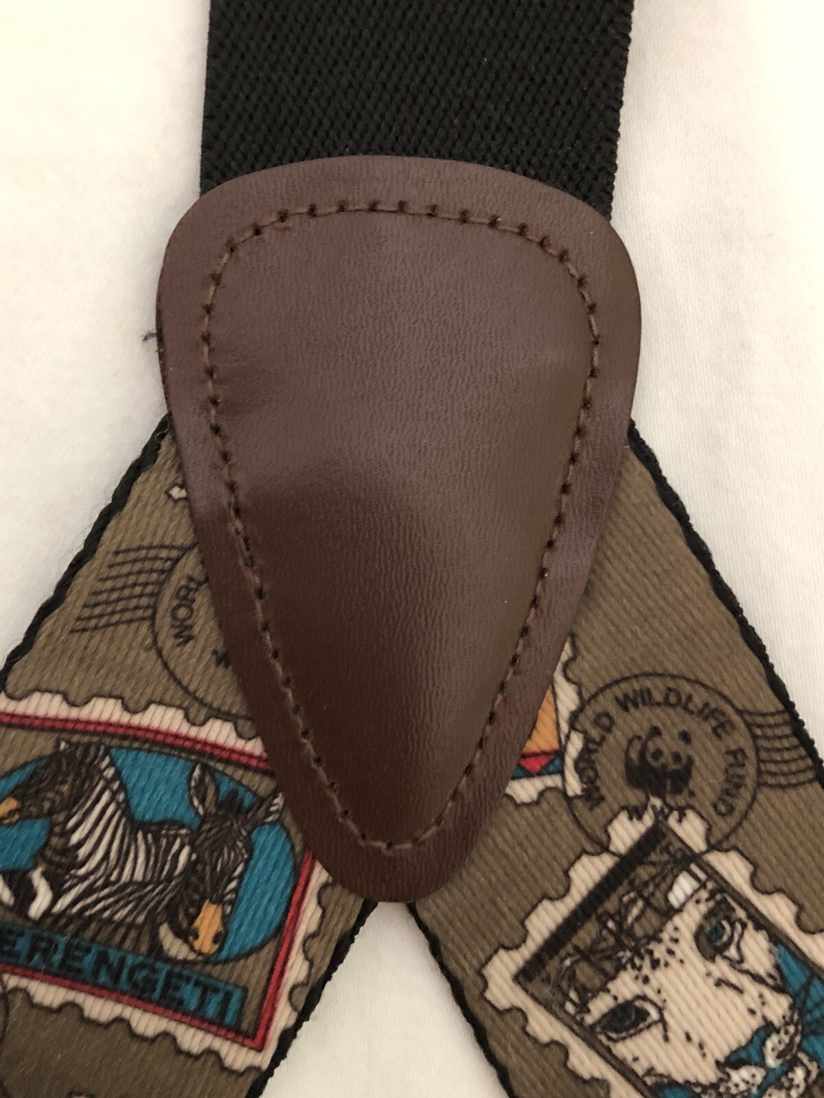 VITG. WWF WORLD WILDLIFE FUND SUSPENDERS 1991 AFRICA ANIMAL STAMPS BROWN LEATHER