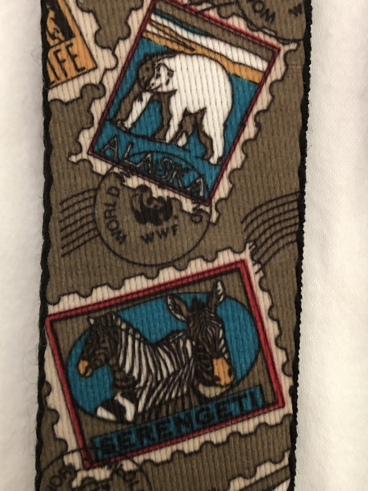 как выглядит VITG. WWF WORLD WILDLIFE FUND SUSPENDERS 1991 AFRICA ANIMAL STAMPS BROWN LEATHER фото