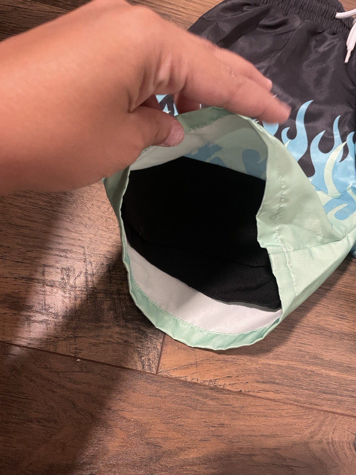 как выглядит Boys blue and green flmes swim trunks size 7/8 фото