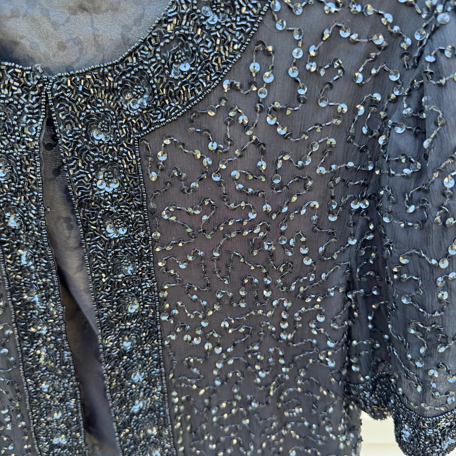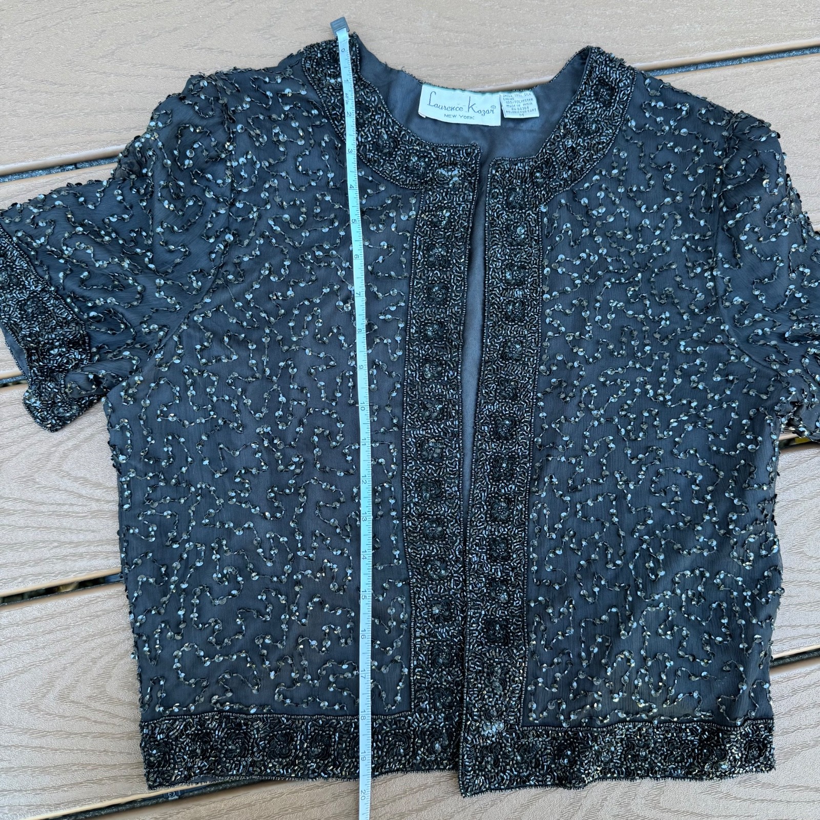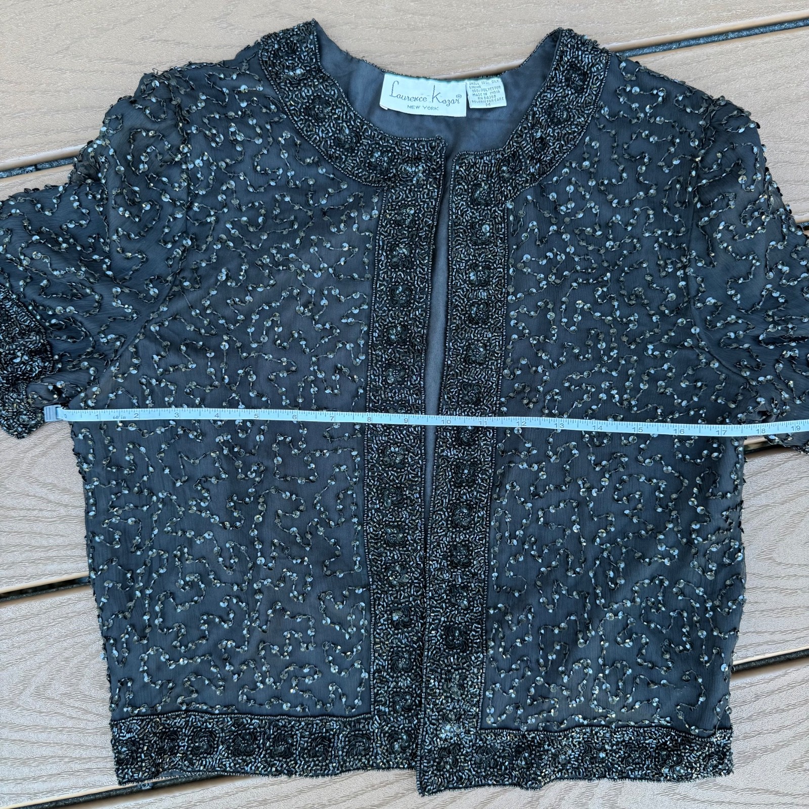 как выглядит Laurence Kazar Vintage embroidered beaded silk evening Jacket Cardigan Bolero фото