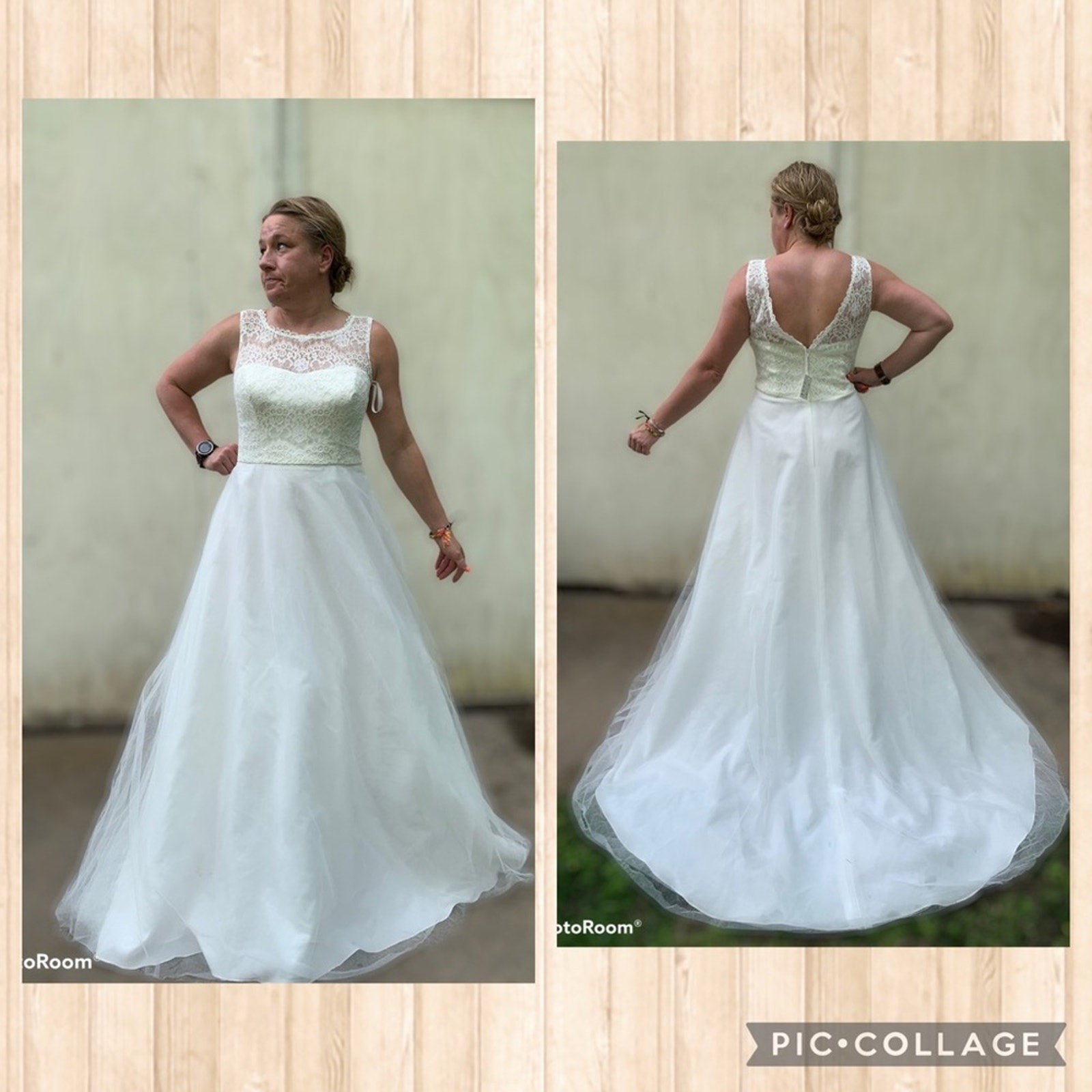 David's Bridal Illusion Lace Tank Wedding Dress Size 14 Style WG3711