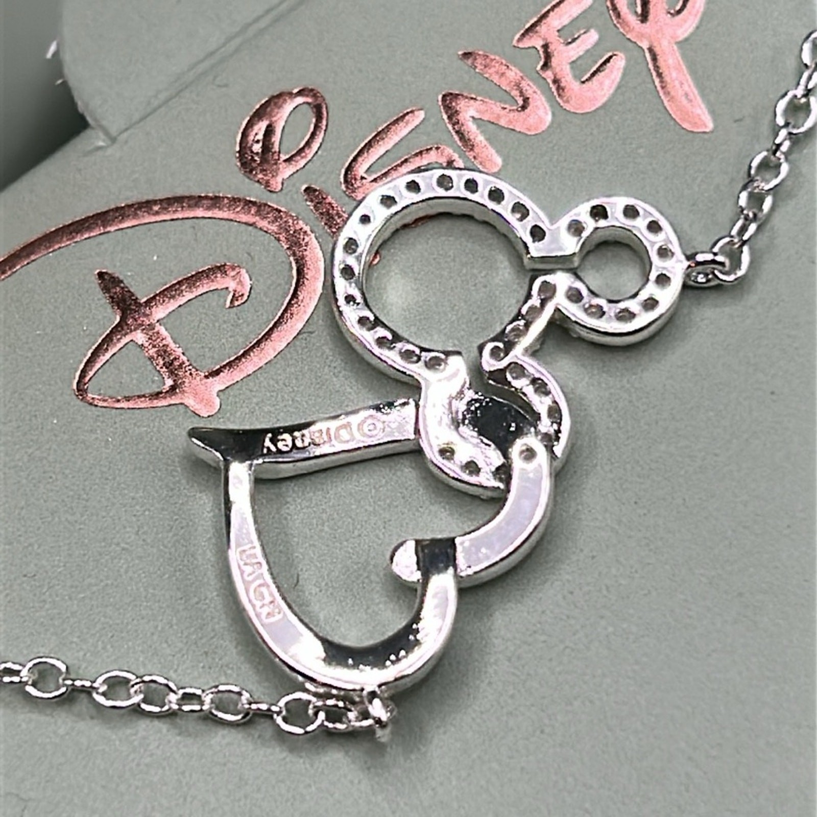 как выглядит Disney I Love Mickey Fine Silver Plated Chain Necklace New in Box Heart Mickey фото