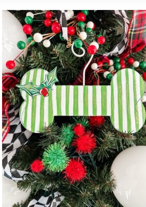 Green White Stripe Metal Dog Bone Ornament The Round Top Collection