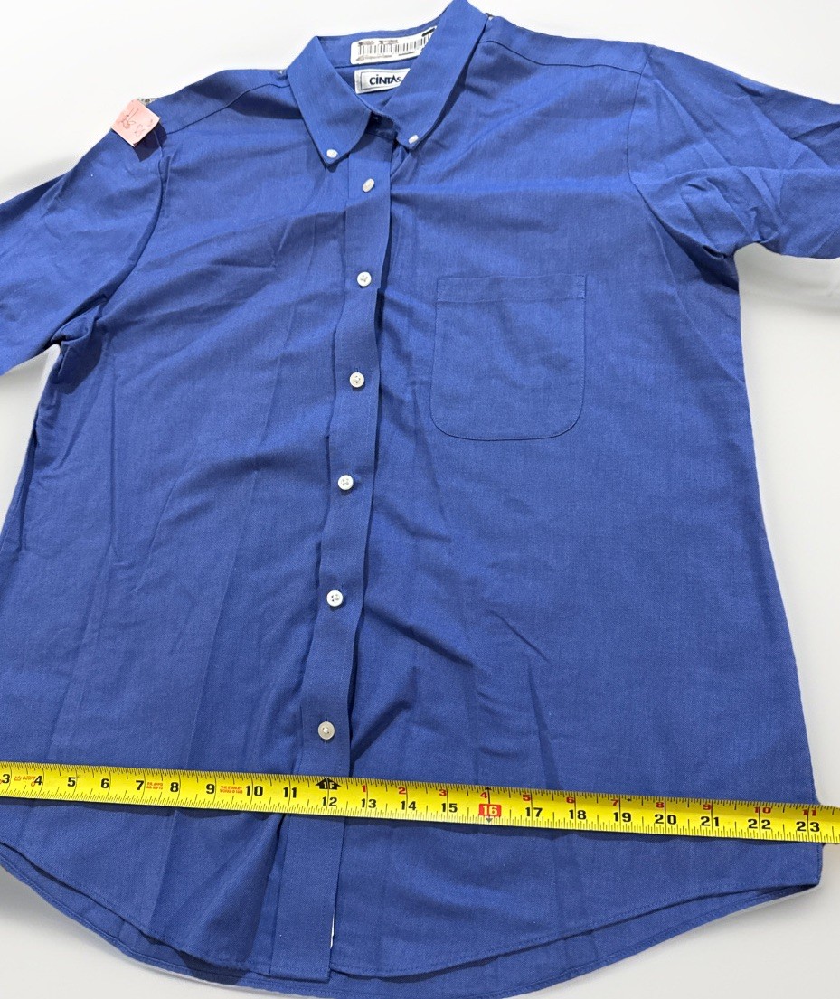 как выглядит Lot Of 2 CINTAS Uniform Work Shirt Size 16 SS Blue Button Up Employee 66528 фото