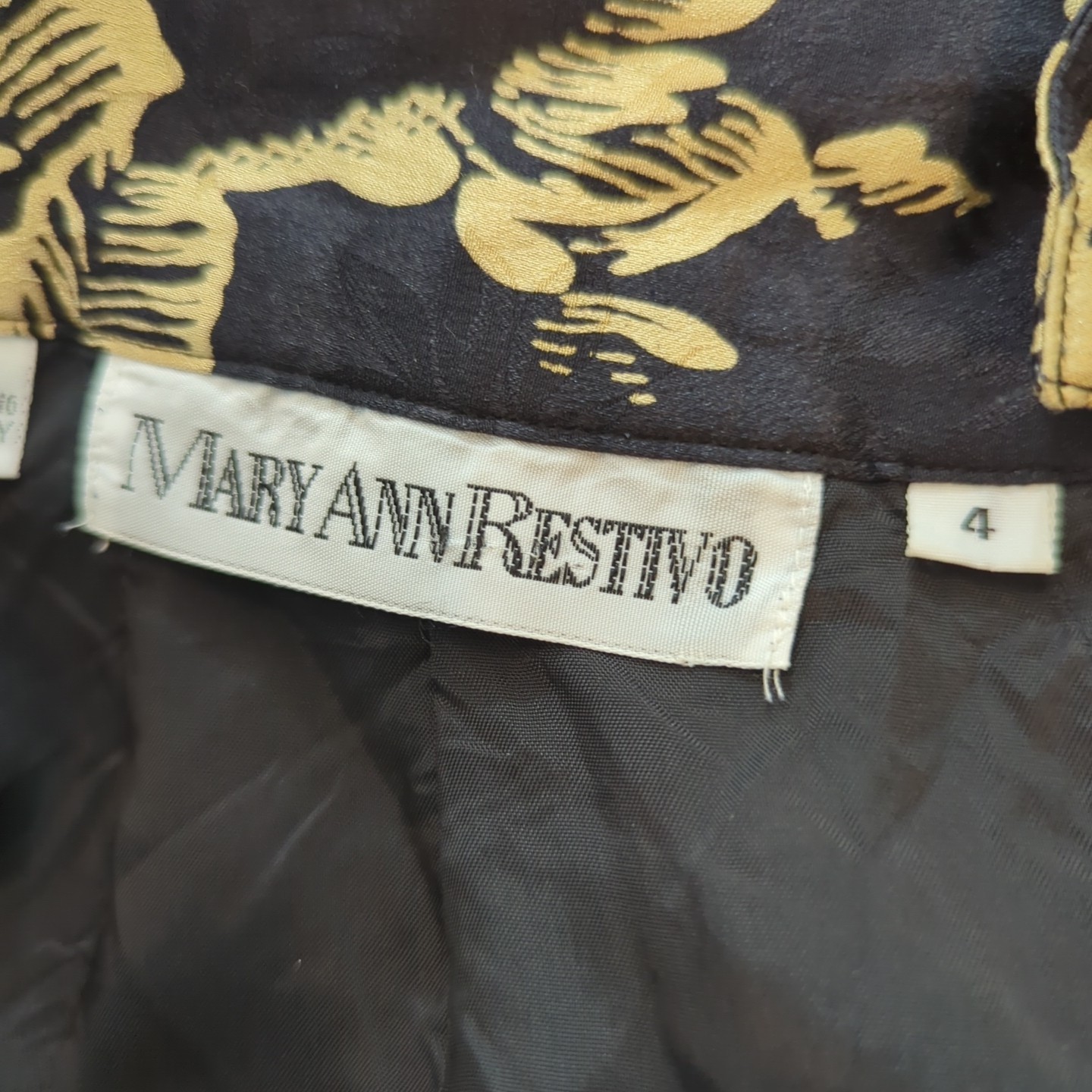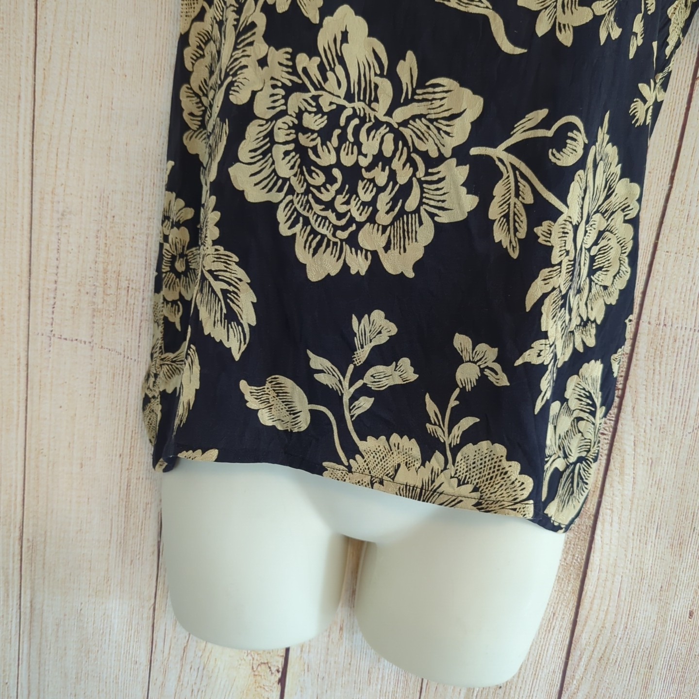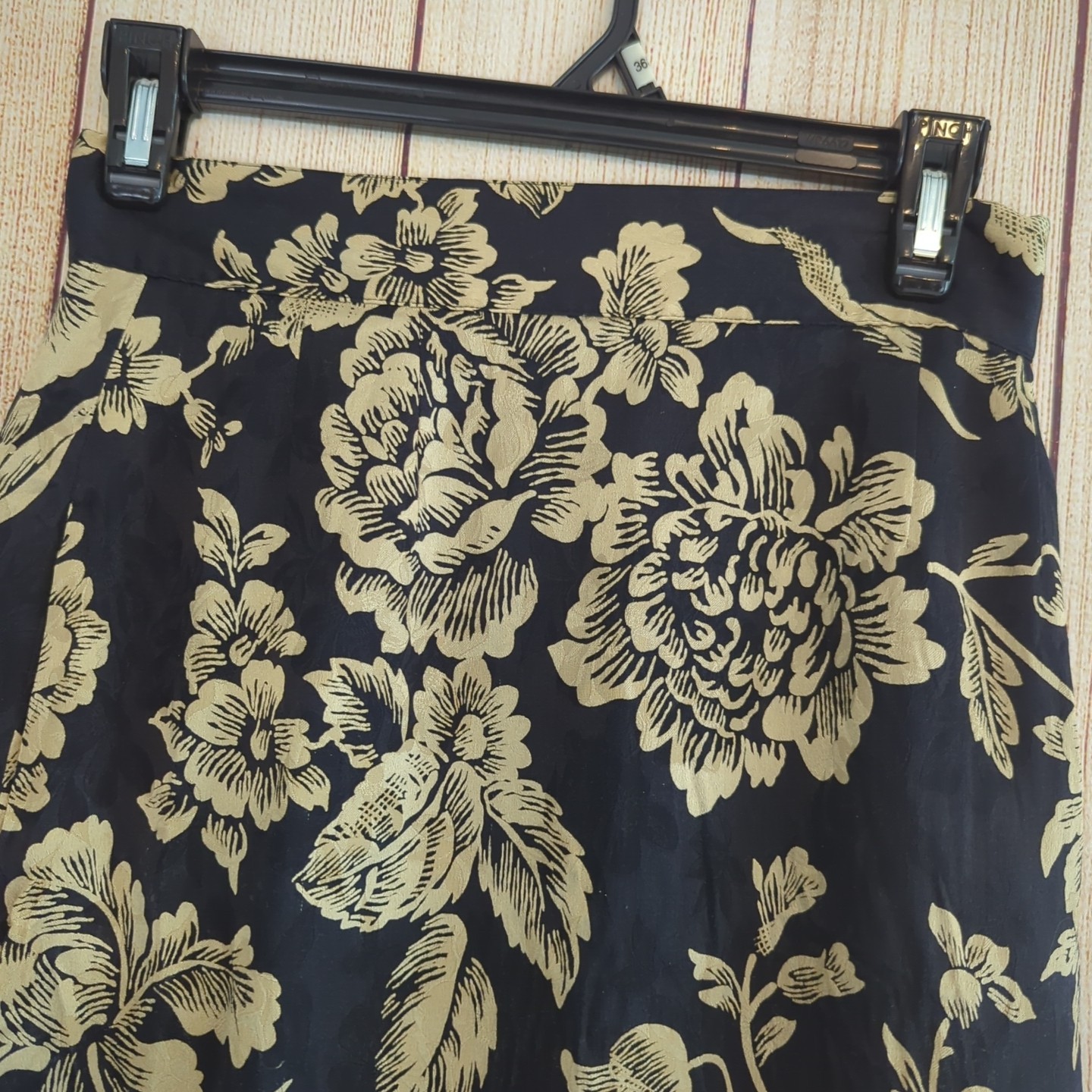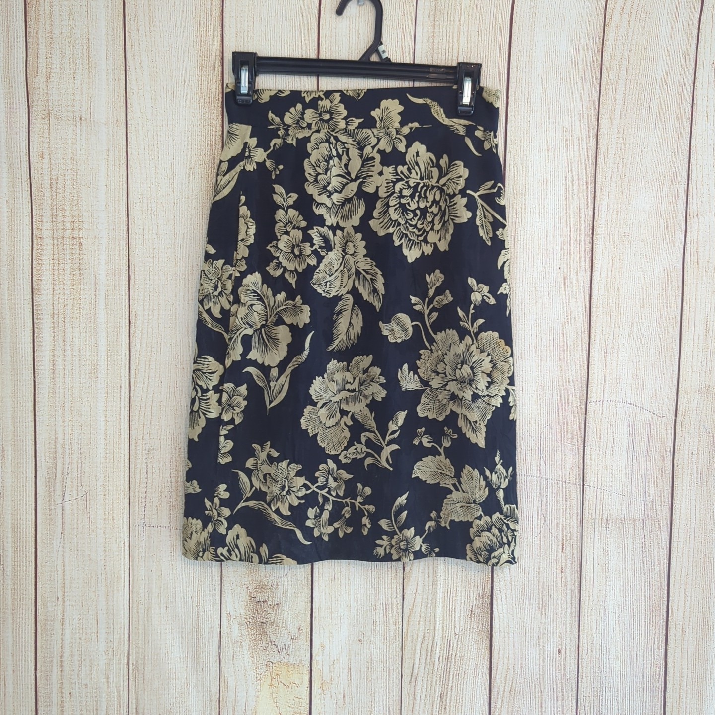 как выглядит Vintage 100 Silk Floral Black and Gold Top and Skirt Set Size 4 фото