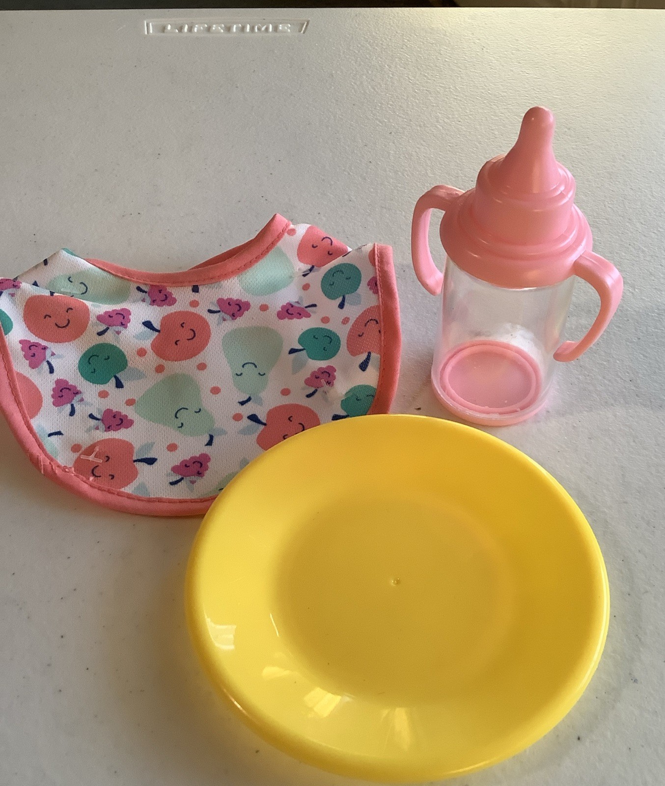 как выглядит BABY DOLL FOODS ,MY SWEET LOVE: BID WITH PLAY FRUIT, FEEDING DISH, SPOON,YARD фото