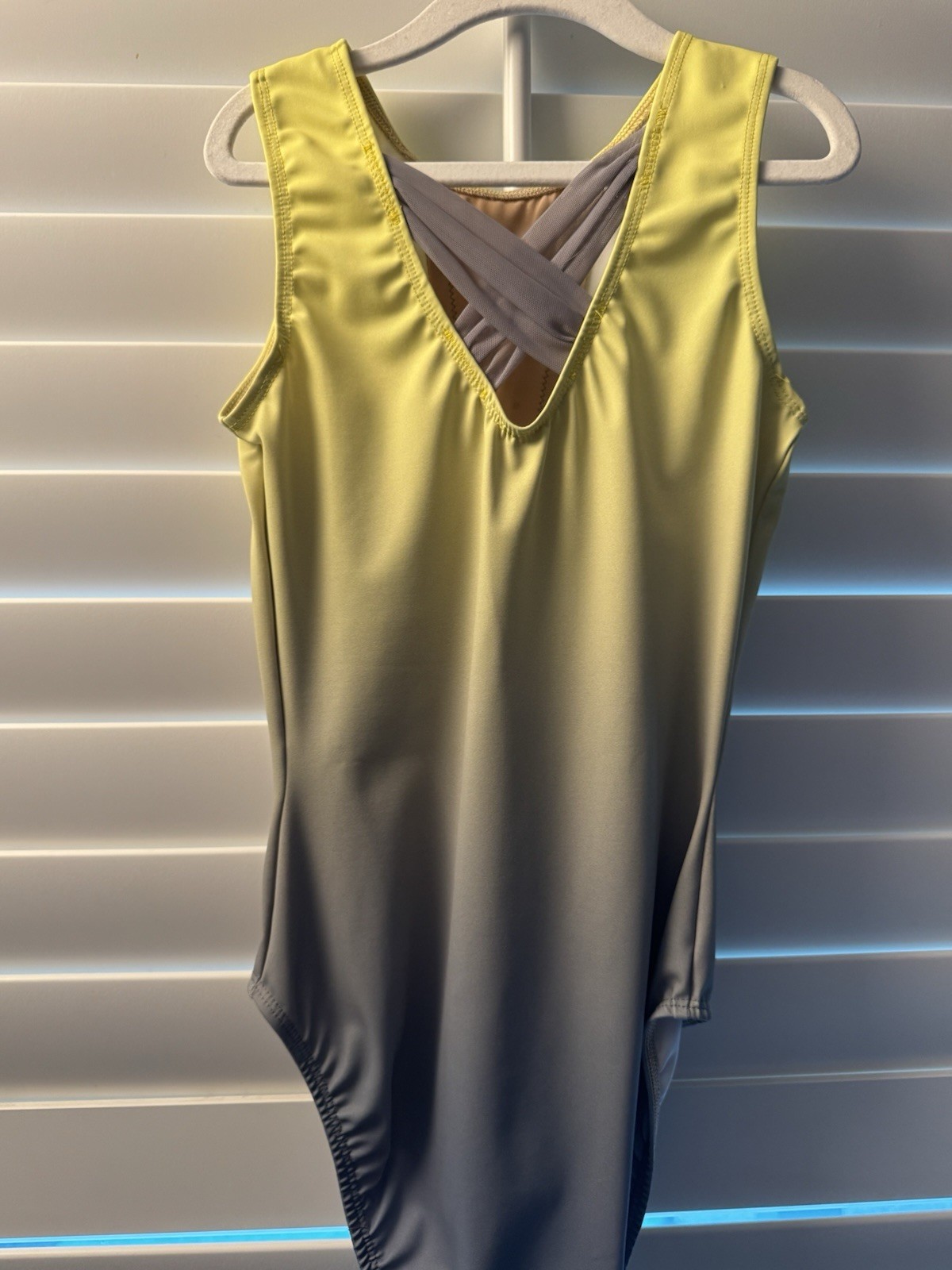как выглядит ROSE GYMWEAR leotard GYMNASTICS DANCE size 12 AS adult small YELLOW GRAY mesh фото
