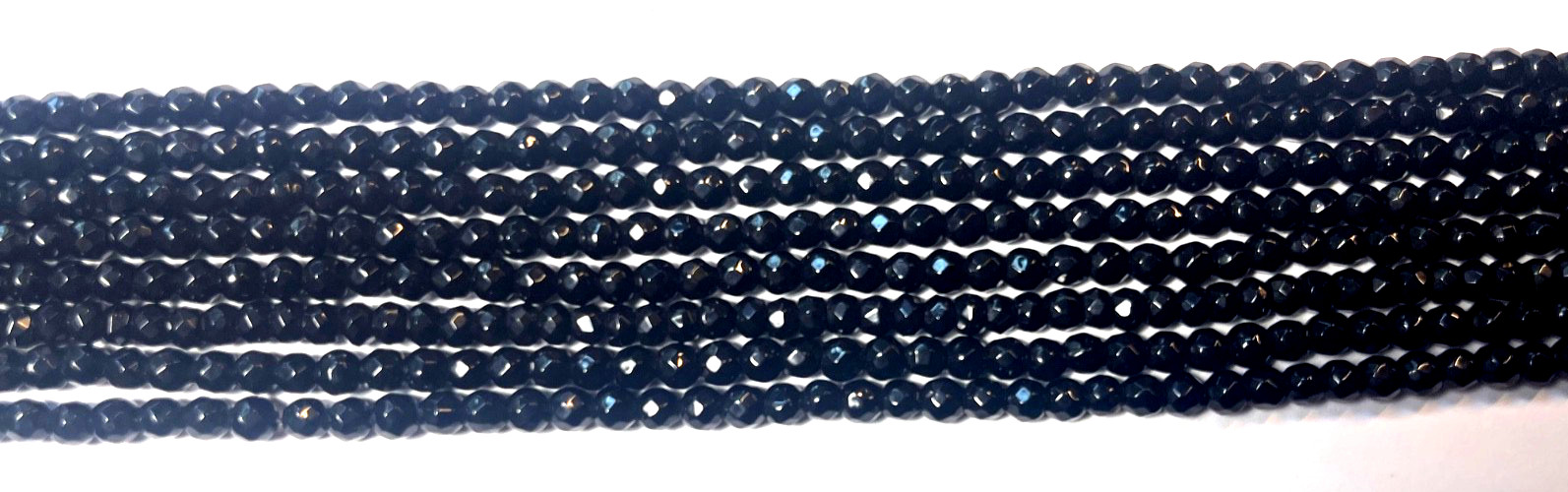 NATURAL BLACK AGATE FACETED ONYX ROUND SHAPE 14.5 STRAND 4 MM BELOW WHOLESALE