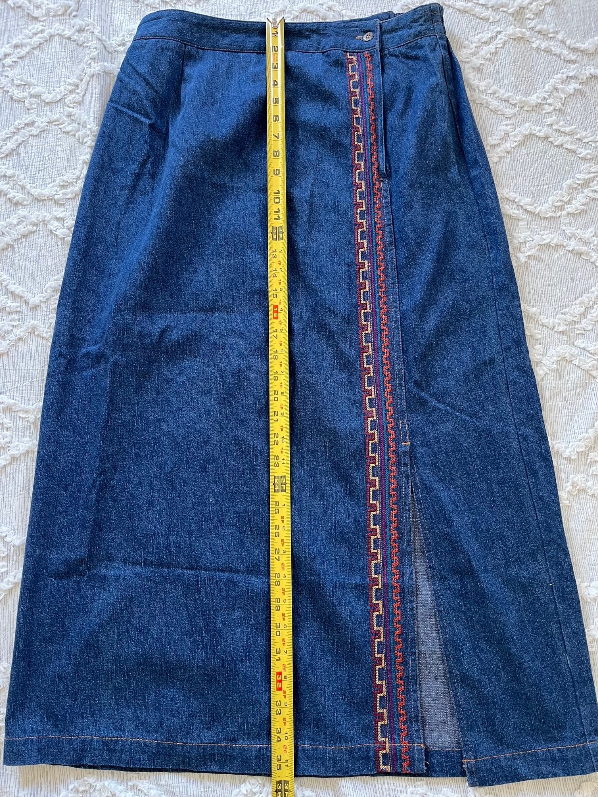 как выглядит Vintage Denim Maxi Skirt Embroidered 100 Cotton Cottagecore Western 32-34 Waist фото