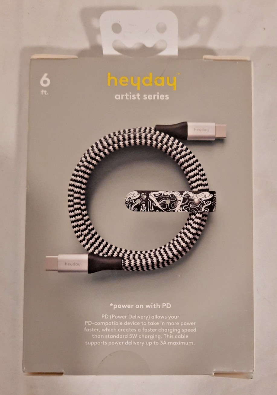 HEYDAY ARTIST SERIES 6 FOOT FAST CHARGING CABLE USB-C TO USB-C OPEN BOX
