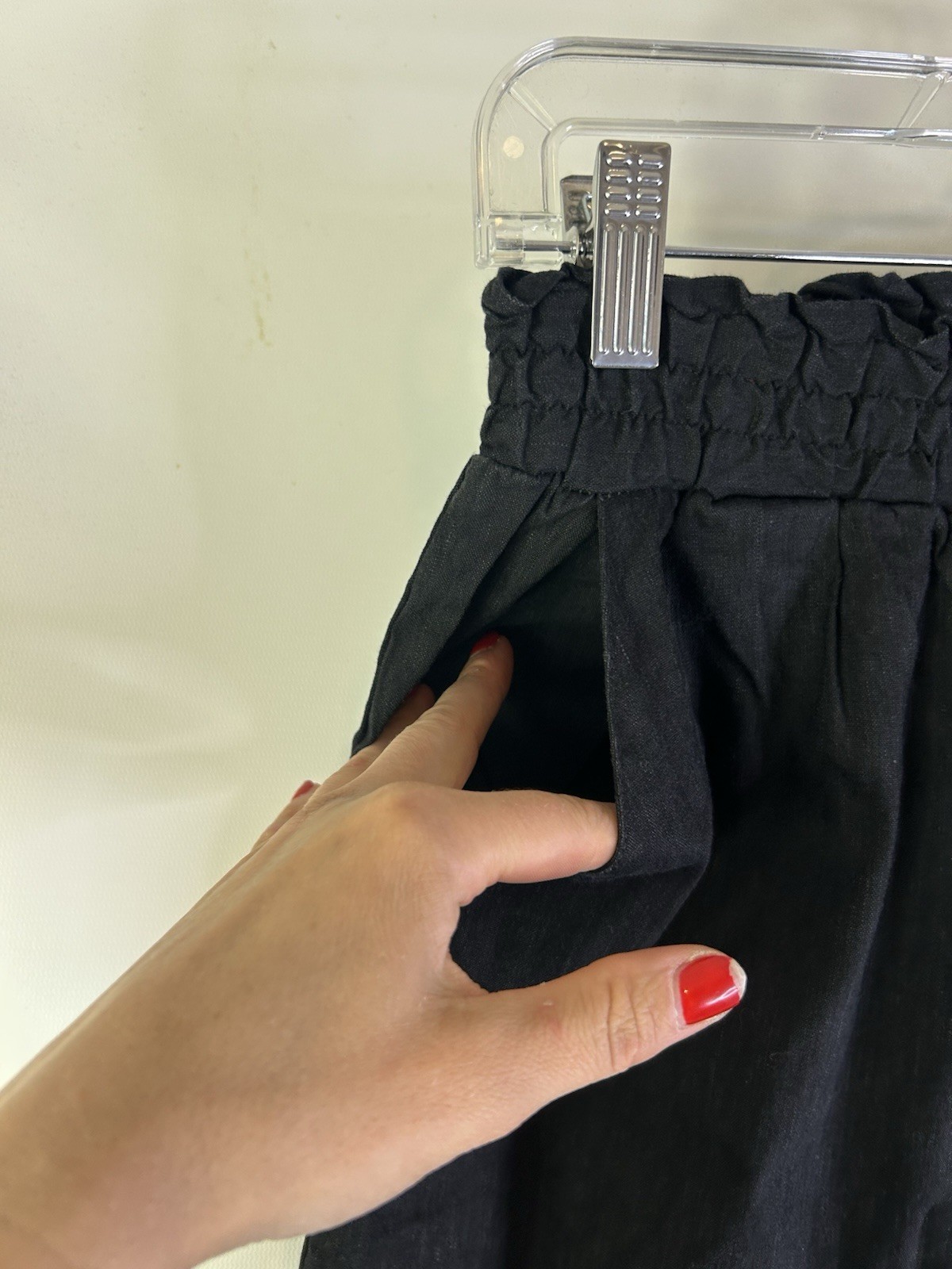 Vintage Y2K Womens Large Linen Blend Smocked Pull On Wide Leg Cropped Pants