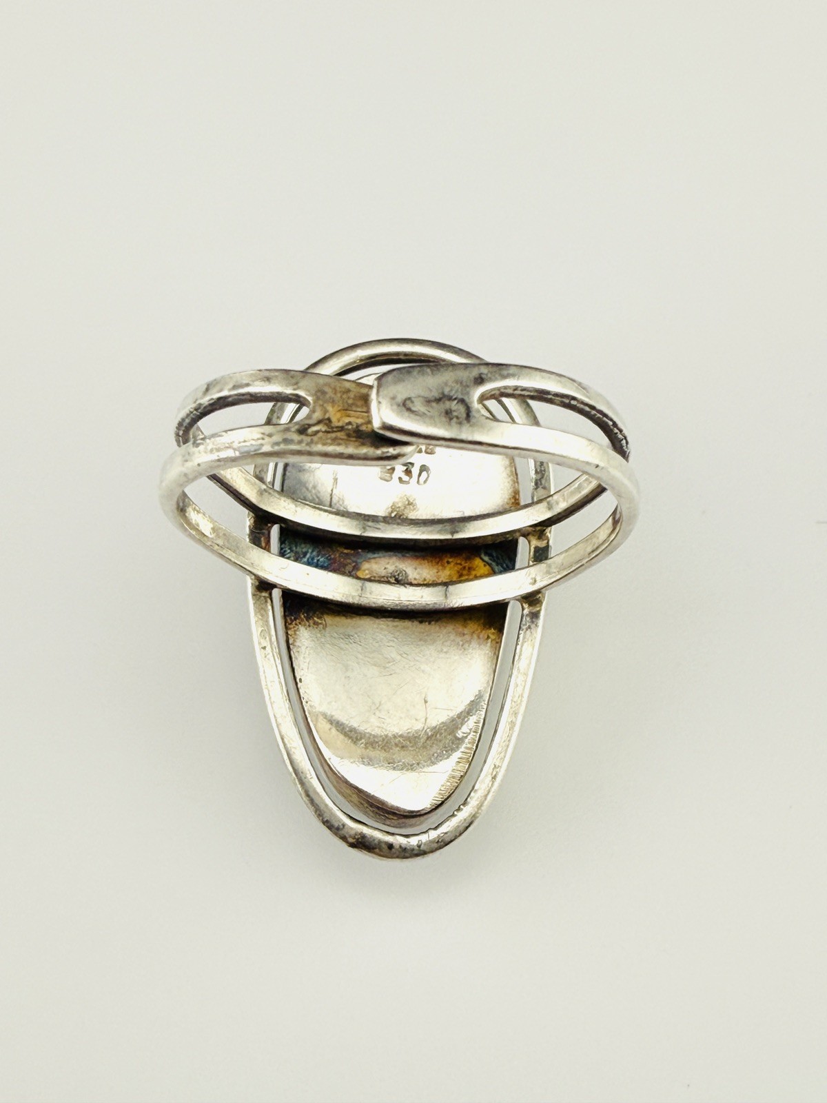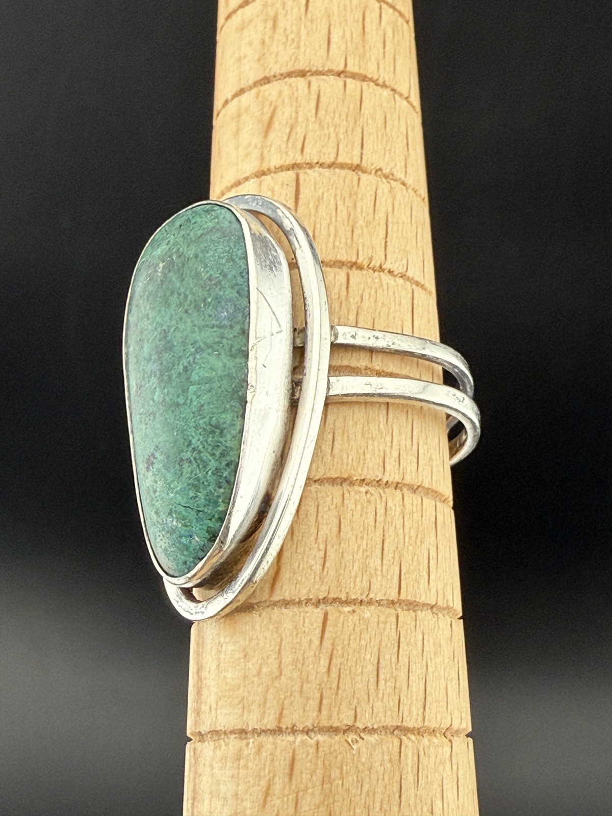 как выглядит Vintage Israel 930 Silver Ring Sinai Green Turquoise Cabochon Adjustable 5.5 фото