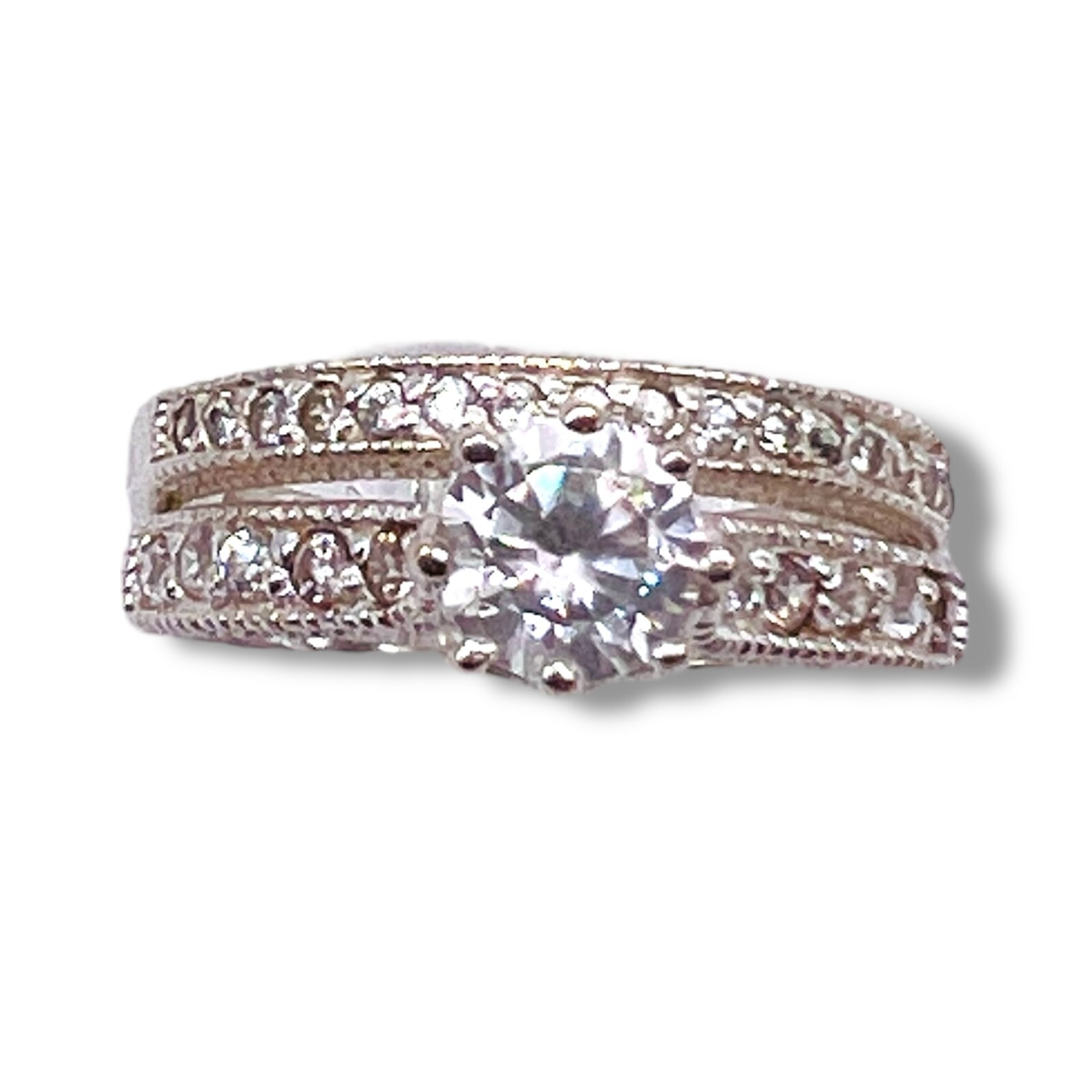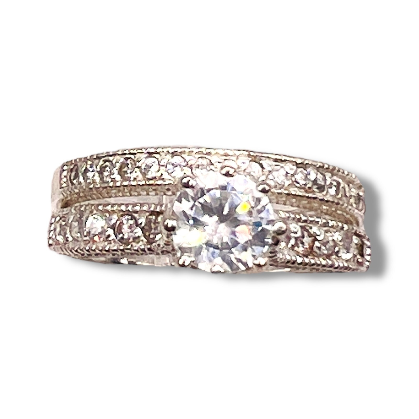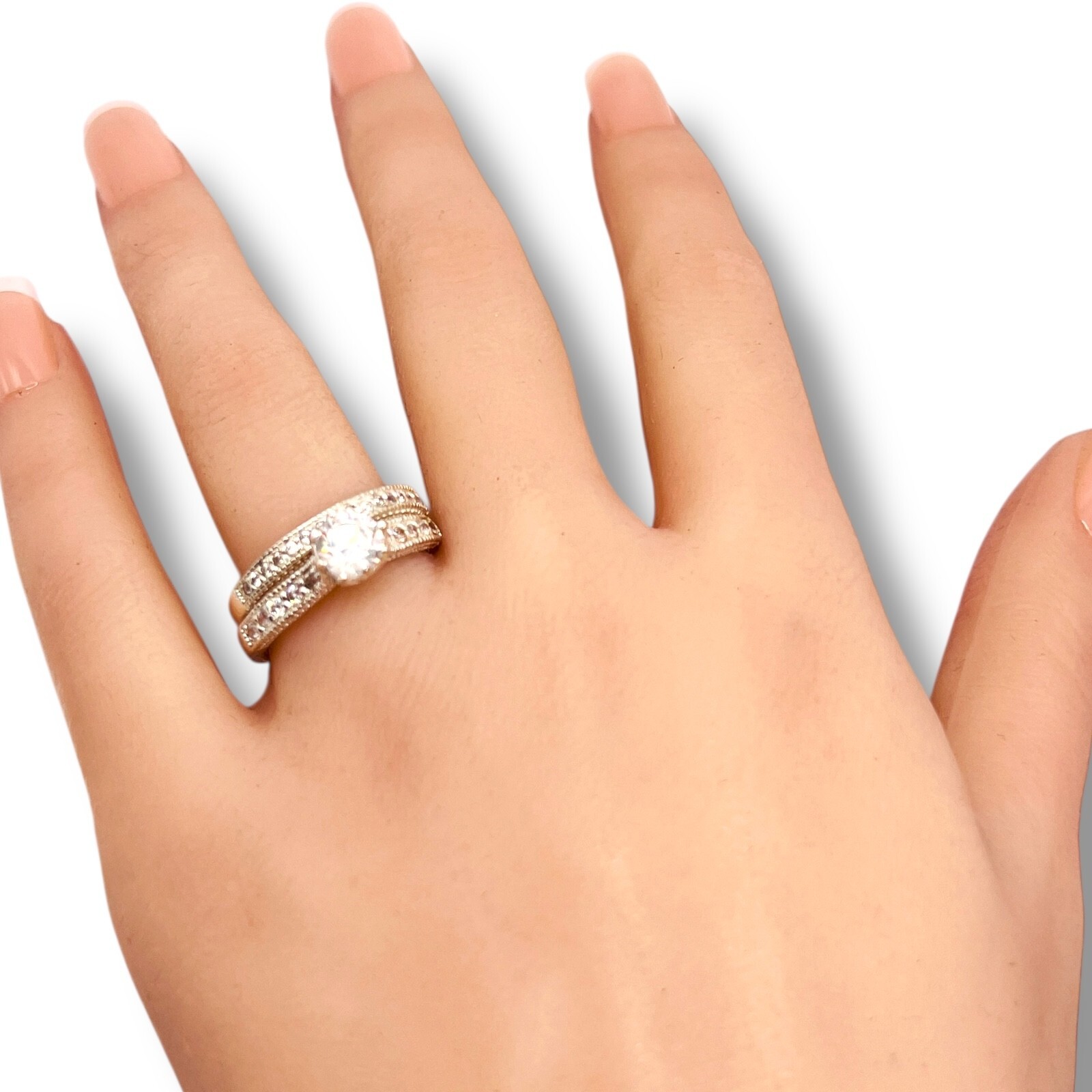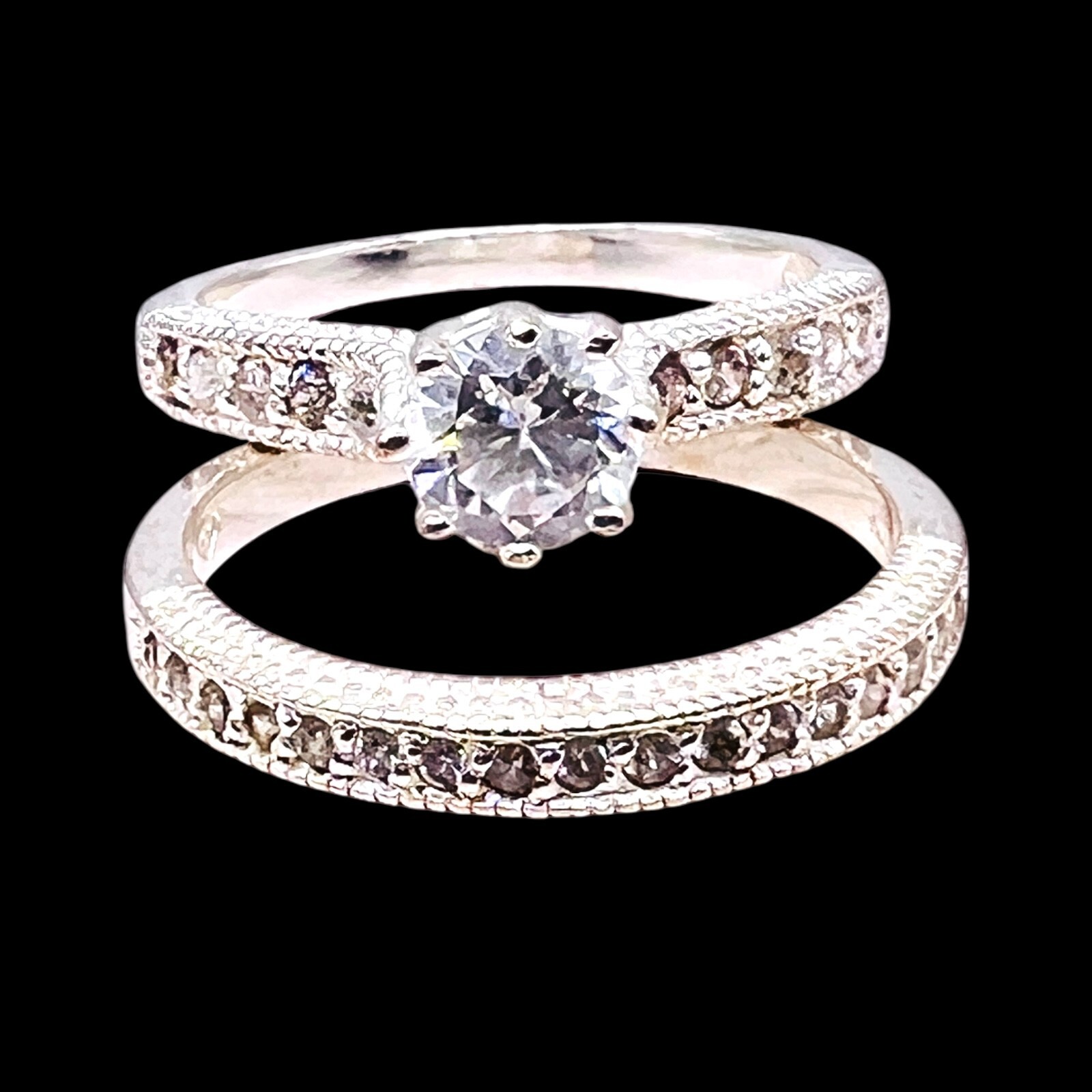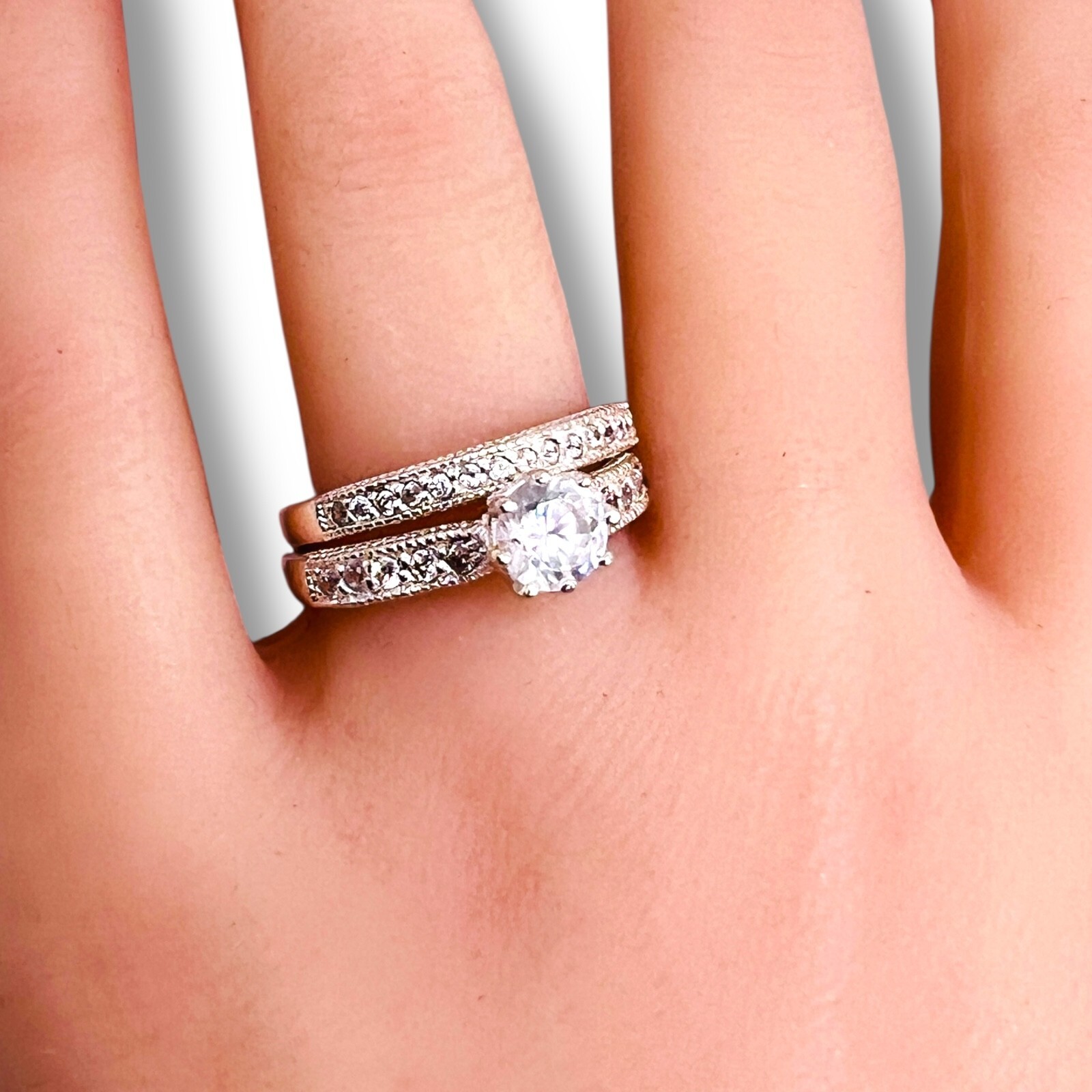 925 Cubic Zirconia Sterling Silver Round Wedding Engagement Duo Set Size 8
