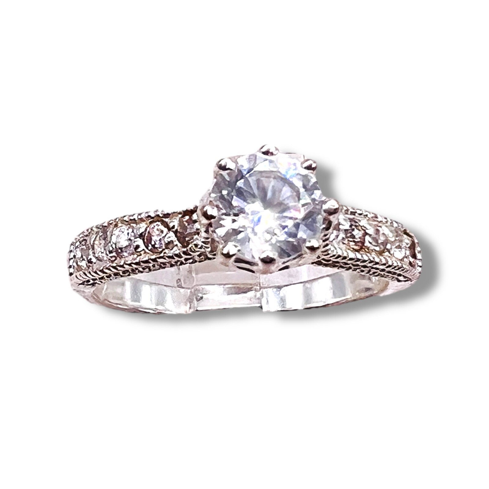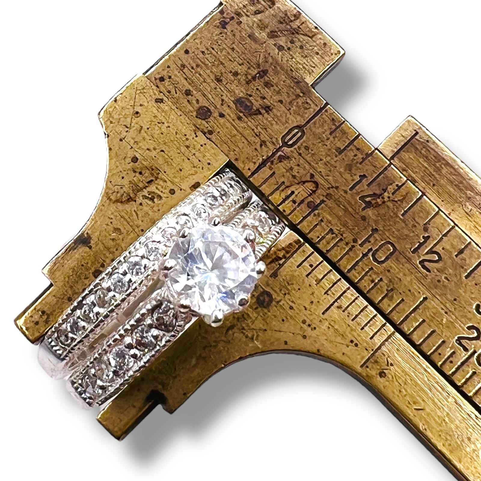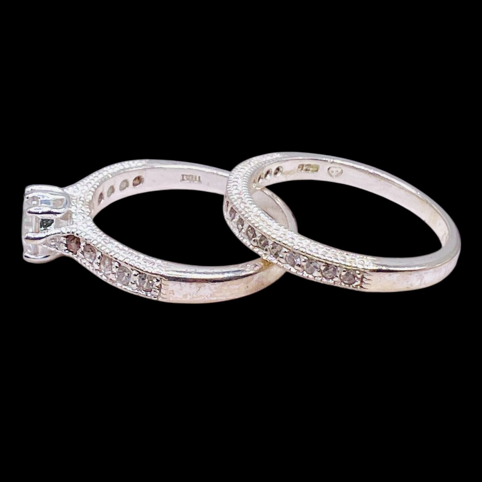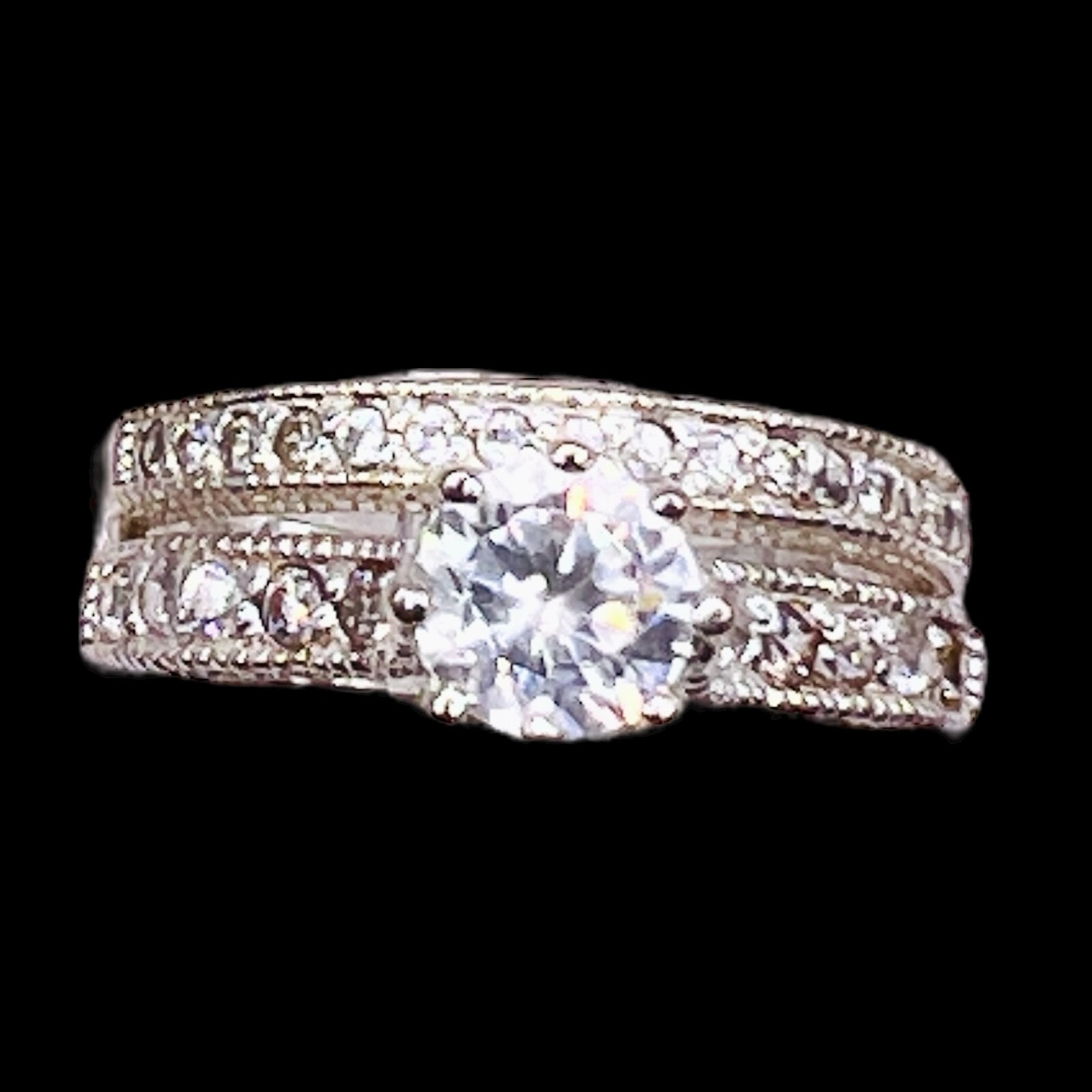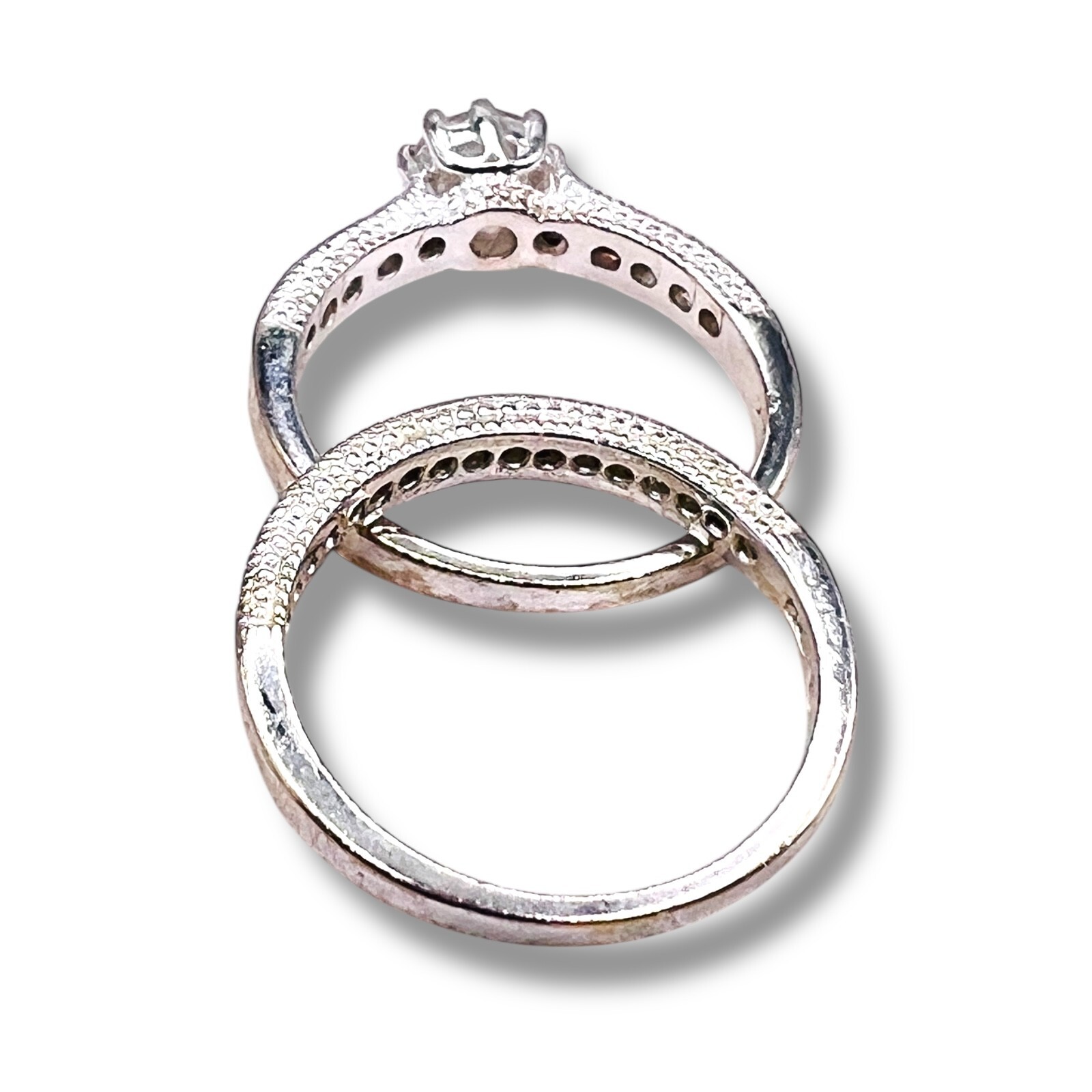 925 Cubic Zirconia Sterling Silver Round Wedding Engagement Duo Set Size 8