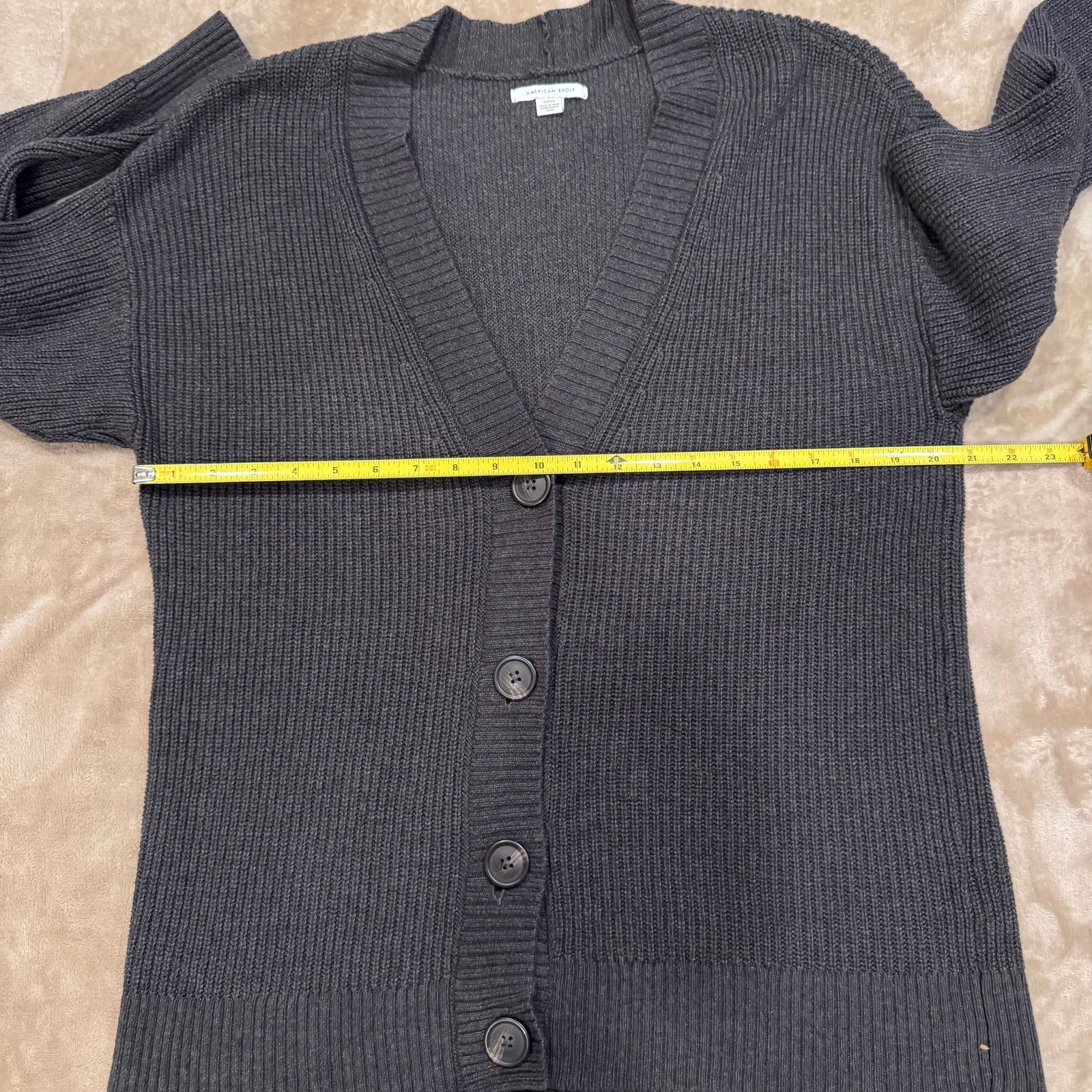 American Eagle Striped Cardigan Black White Gray Big Buttons