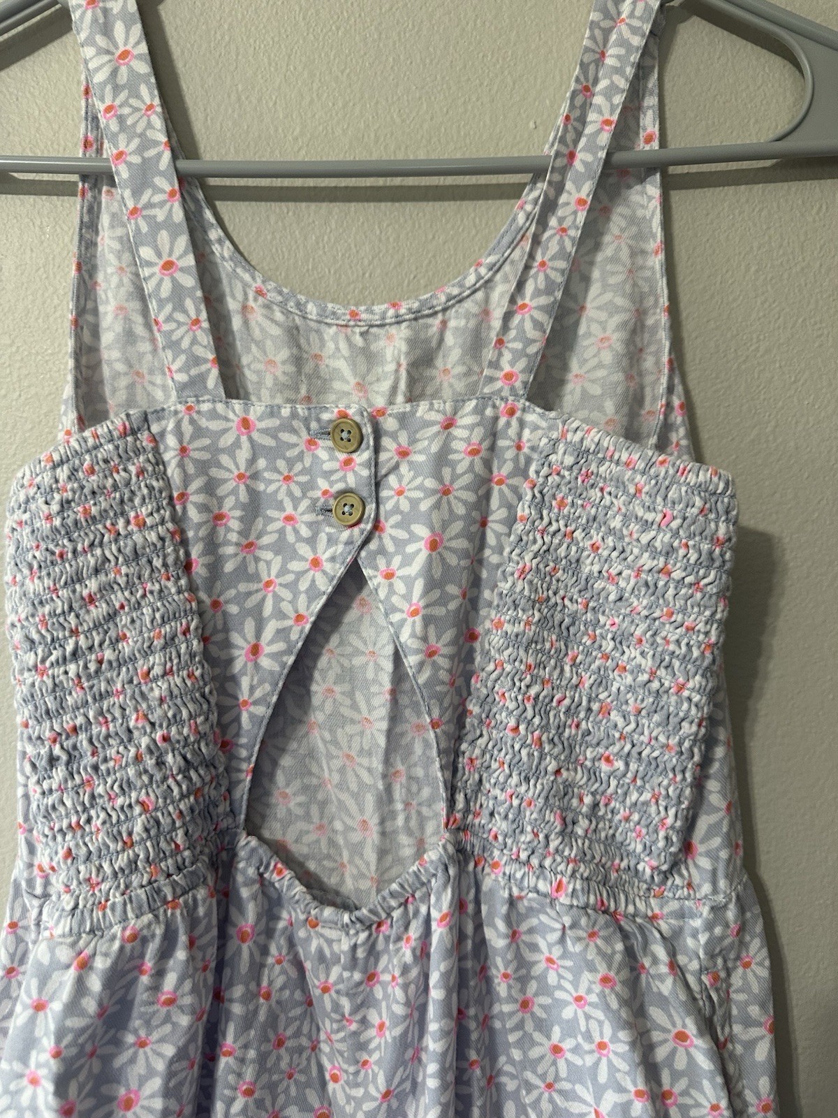 как выглядит Cat Jack Girls 1pc Jumpsuit Daisy 10-12 Sleeveless Open Back Smocked фото
