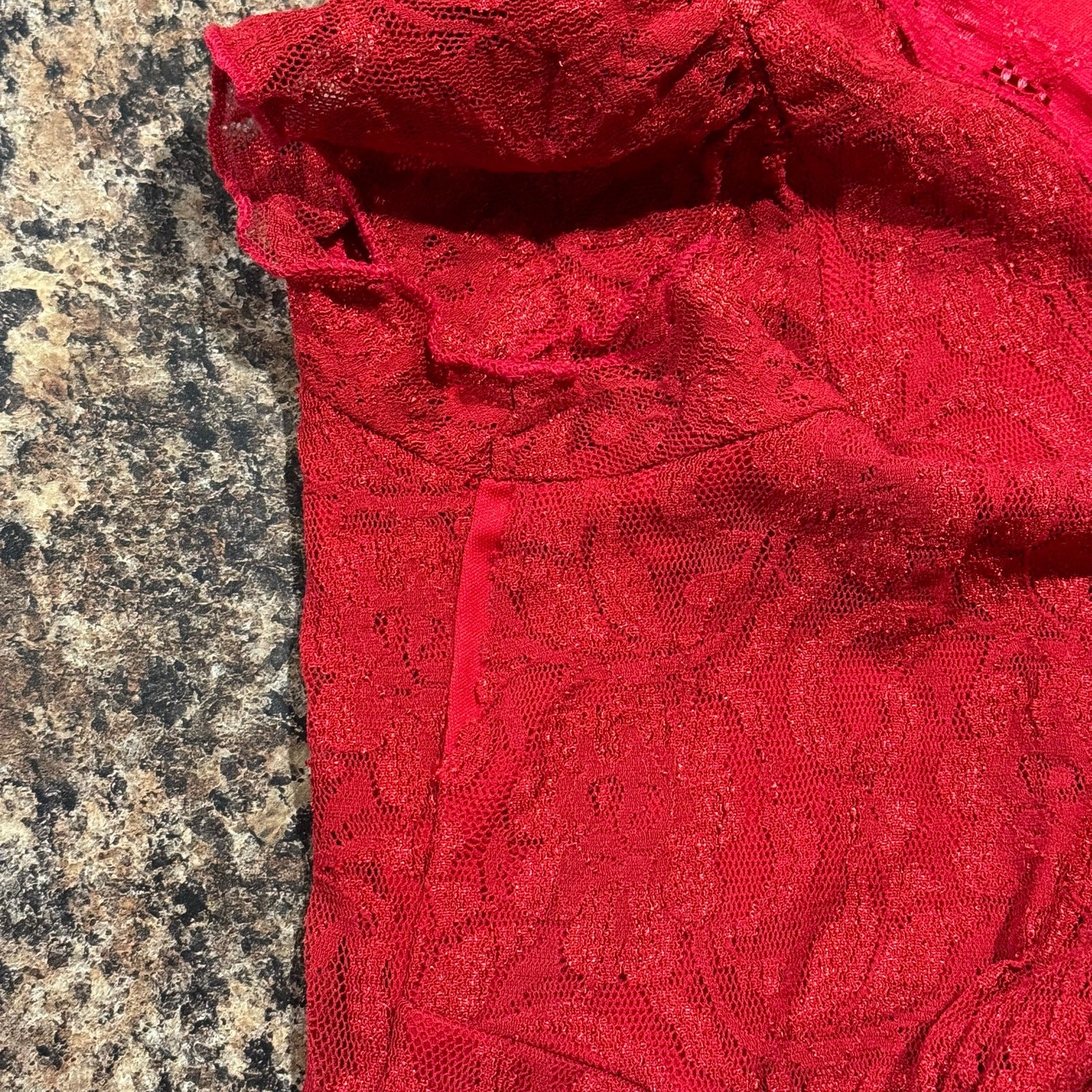 как выглядит Vintage Top Floral Lace Whimsigoth Y2K Romantic Coquette Dark Academia Red Small фото