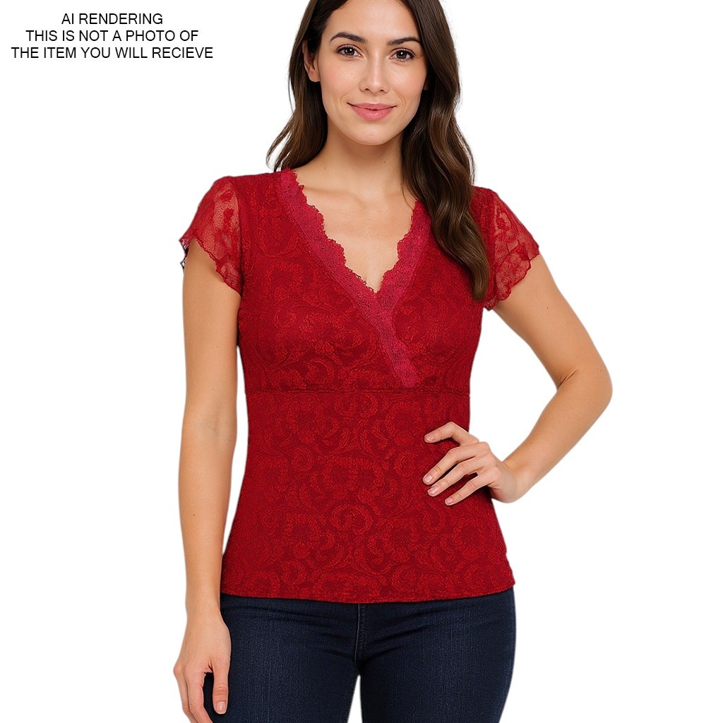 Vintage Top Floral Lace Whimsigoth Y2K Romantic Coquette Dark Academia Red Small