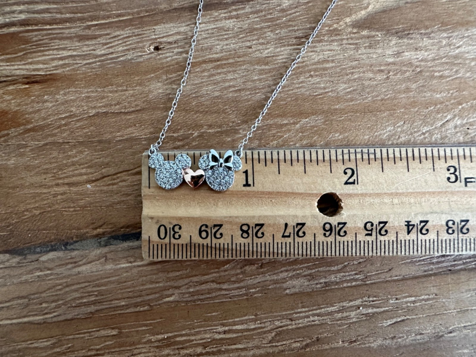 как выглядит Disney Mickey Mouse Minnie Mouse Sterling Silver cubic zirconia necklace фото
