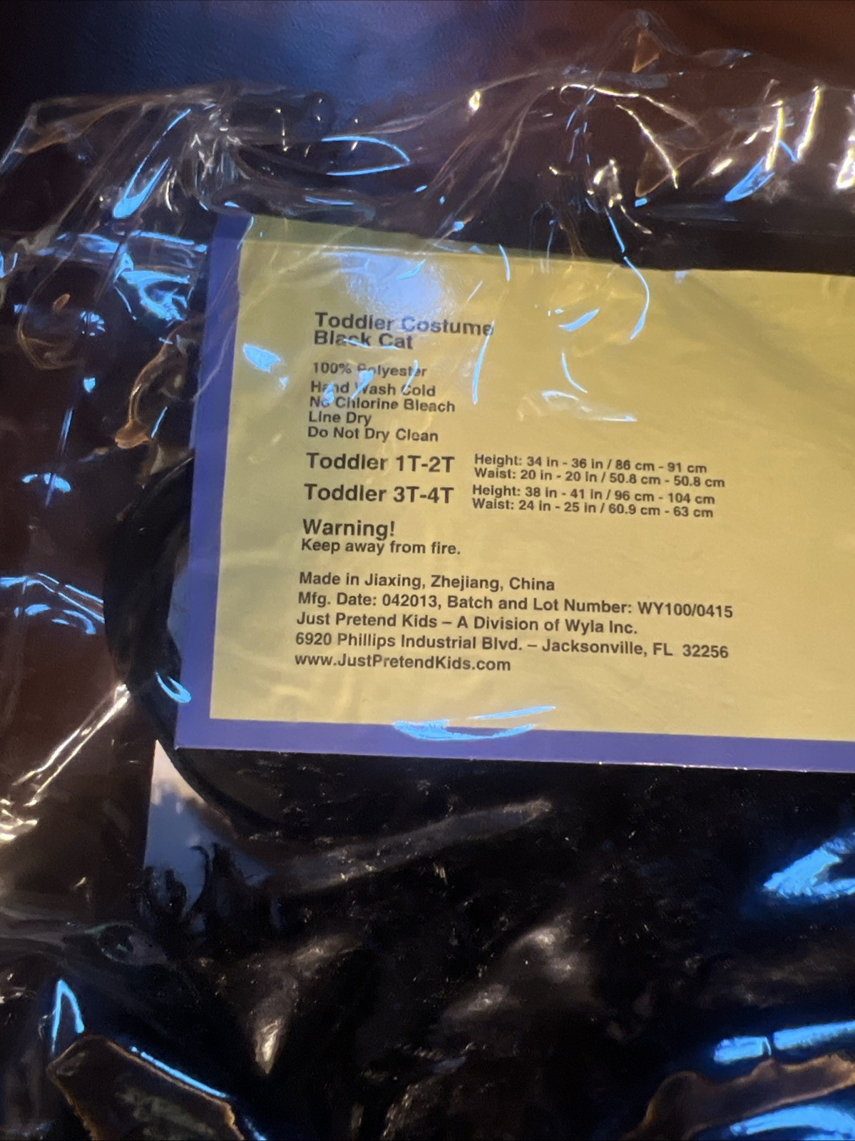 Just Pretend Black Cat Costume Toddler 1T-2T Well Made Brand New
