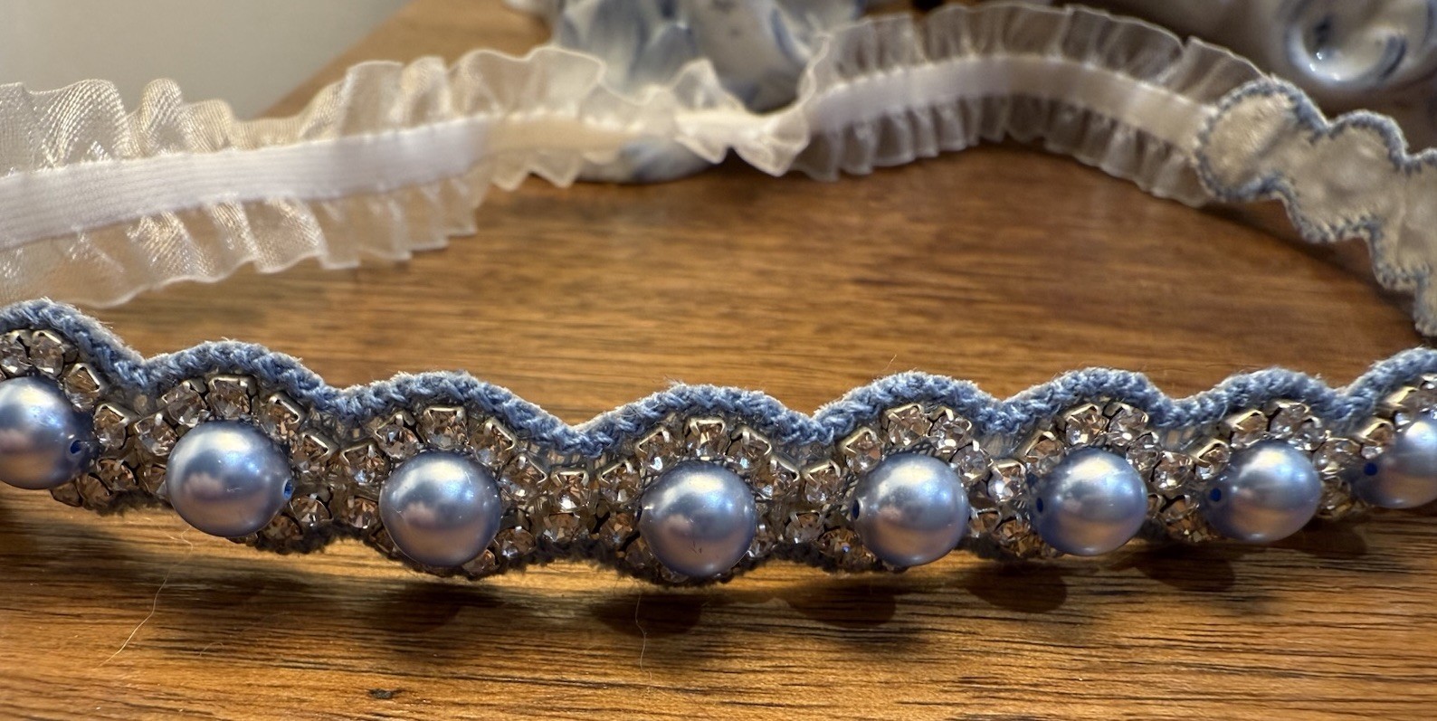 как выглядит Bridal Garter Something Blue Pearl Rhinestone Garter Toss фото