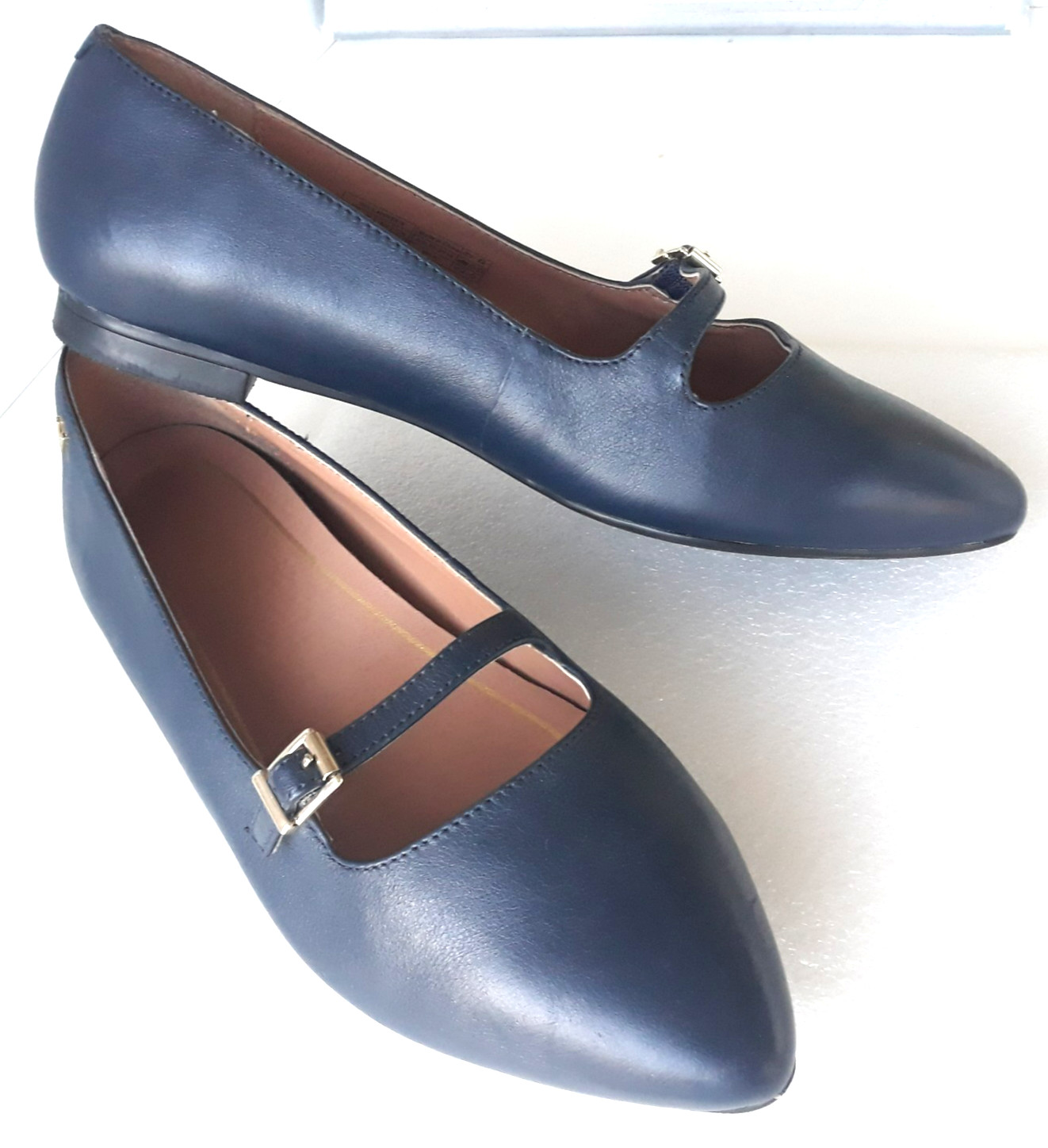 как выглядит Vionic Delilah Blue Leather Pointed Toe Mary Jane Flats Wos 6 Worn Once EXCEL фото