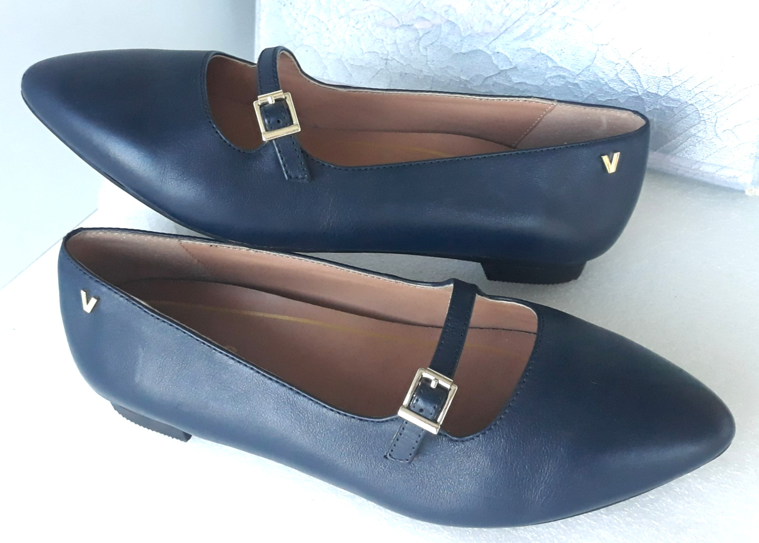 Vionic Delilah Blue Leather Pointed Toe Mary Jane Flats Wo's 6 Worn Once EXCEL