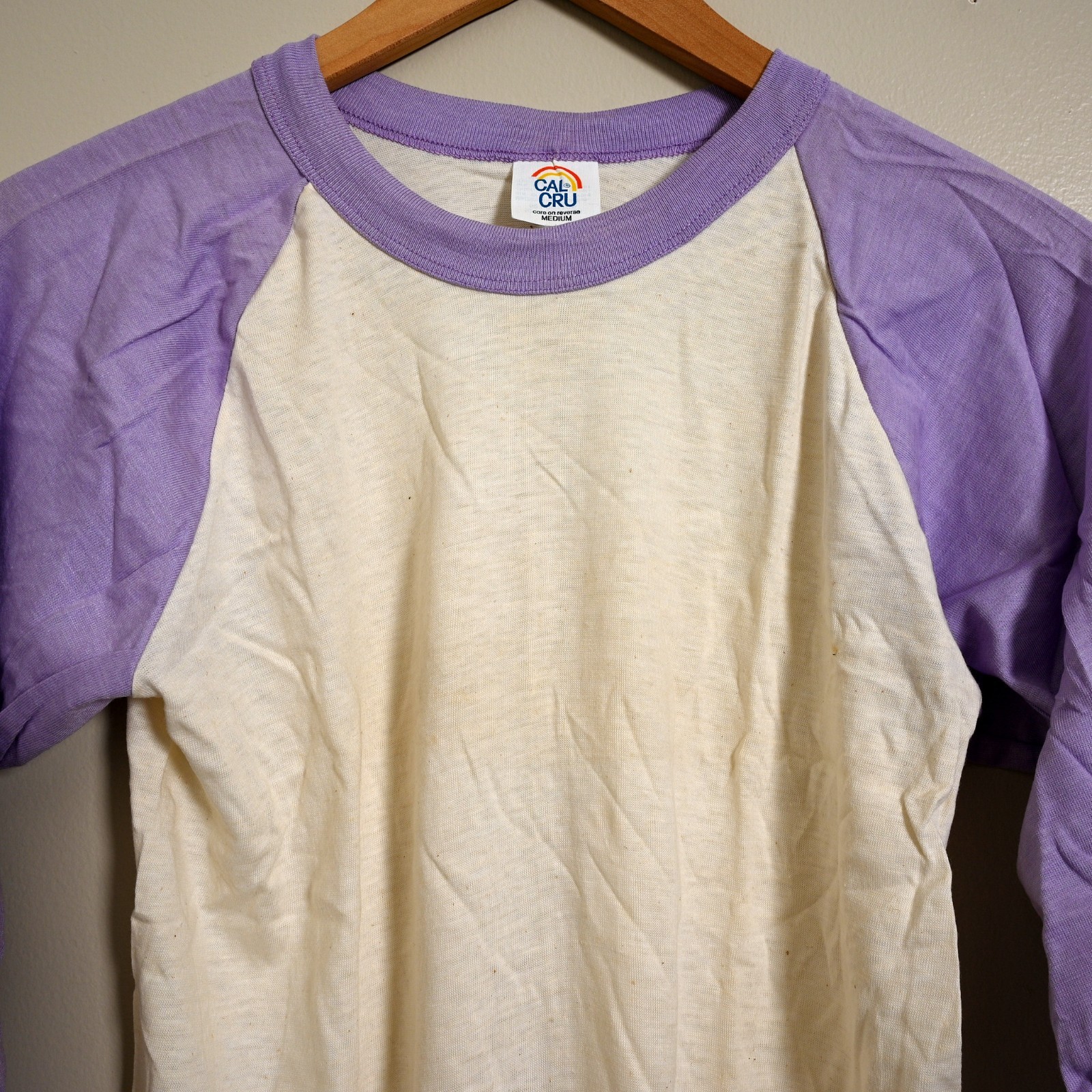 Vintage 80s Cal Cru Purple Sleeve Baseball T-Shirt Unisex M NOS