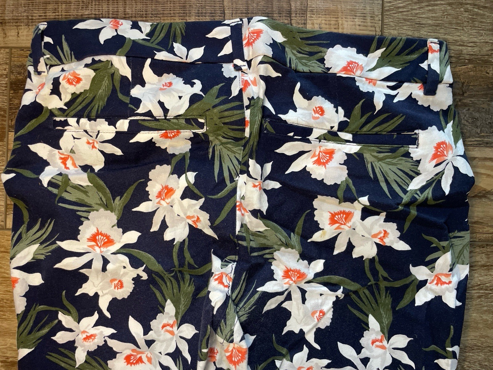 Old Navy Pixie Women s Floral Pants Size 8R Navy White Green Stretch Cotton