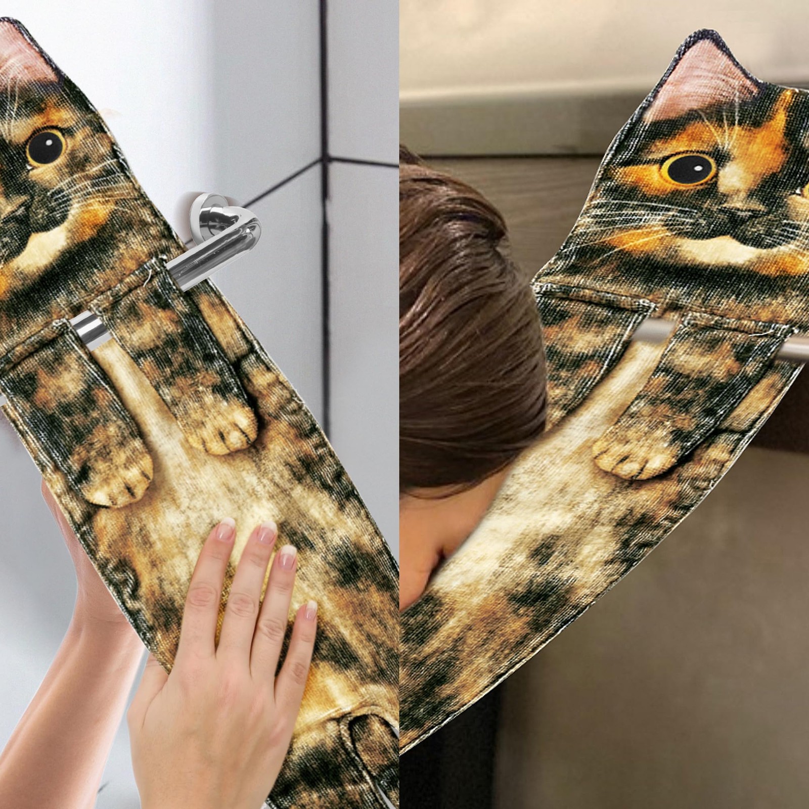 как выглядит Funny Hand Towels for Bathroom Kitchen - Cute Decorative Cat Decor Hanging Wa... фото