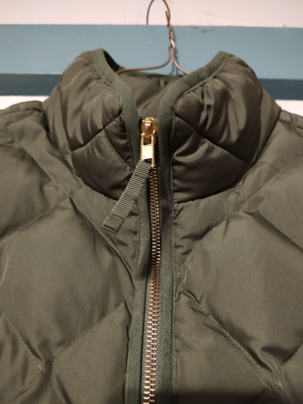 как выглядит Beautiful Woolrich Shimmering Olive Green Quilted Vest. Gold Hardware. фото