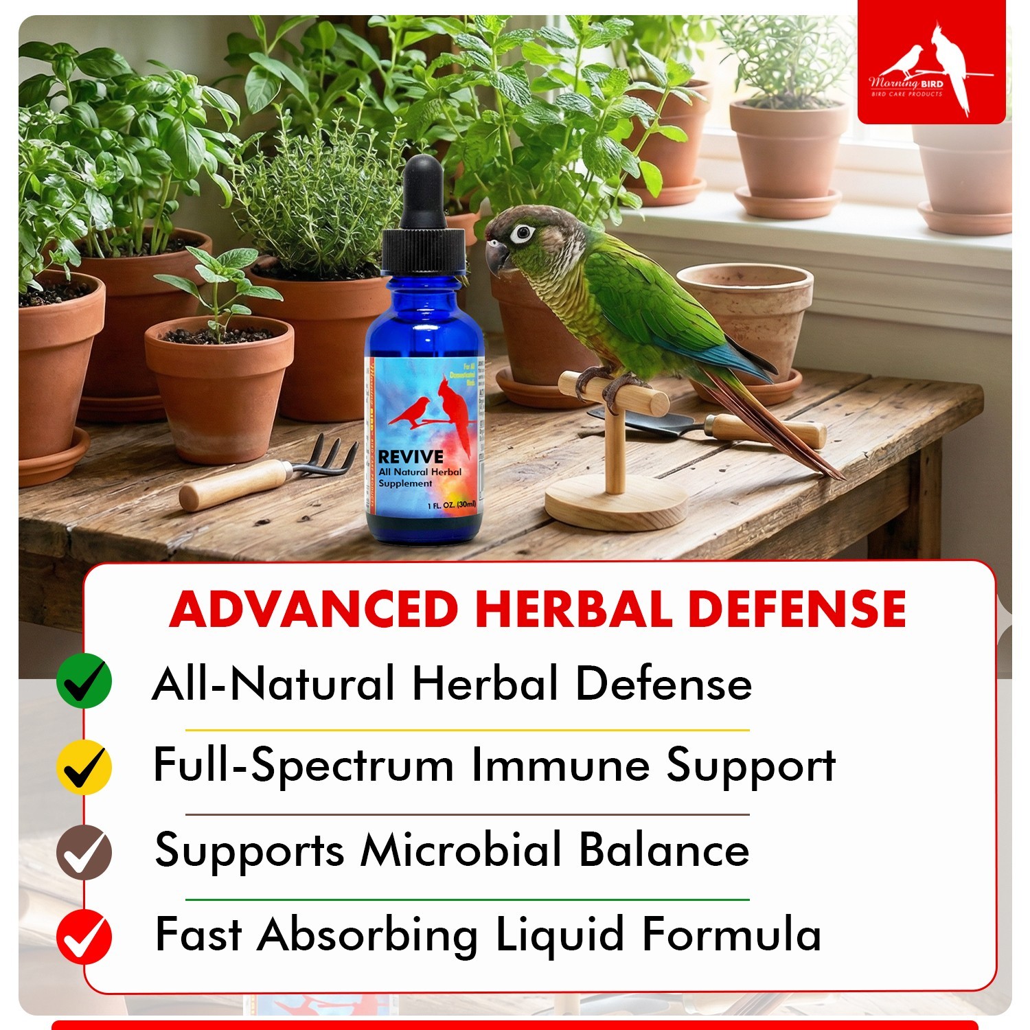 Morning Bird Revive 1 Fl oz Herbal Immune Support for Birds