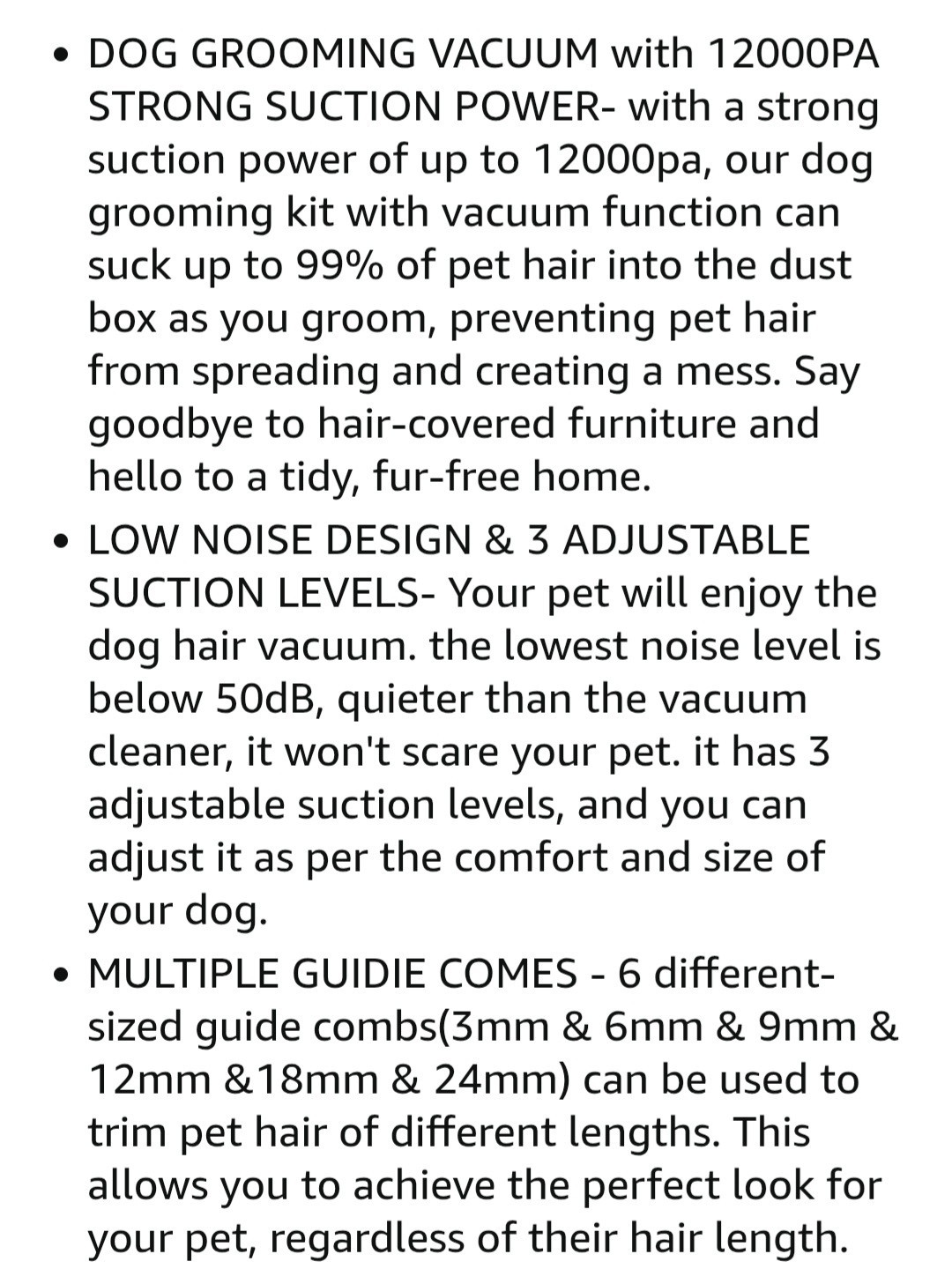 AIRROBO Dog Grooming Vacuum, Dog Grooming Kit,12000Pa Strong Pet Vacuum, 2L Larg