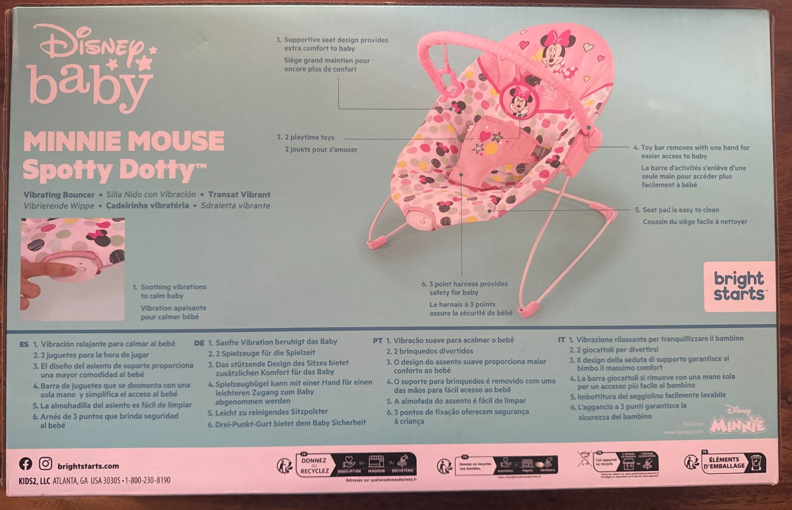 Baby Bouncer/Rocker - Vibrating Bright Starts Disney Minnie Mouse, Spotty Dotty
