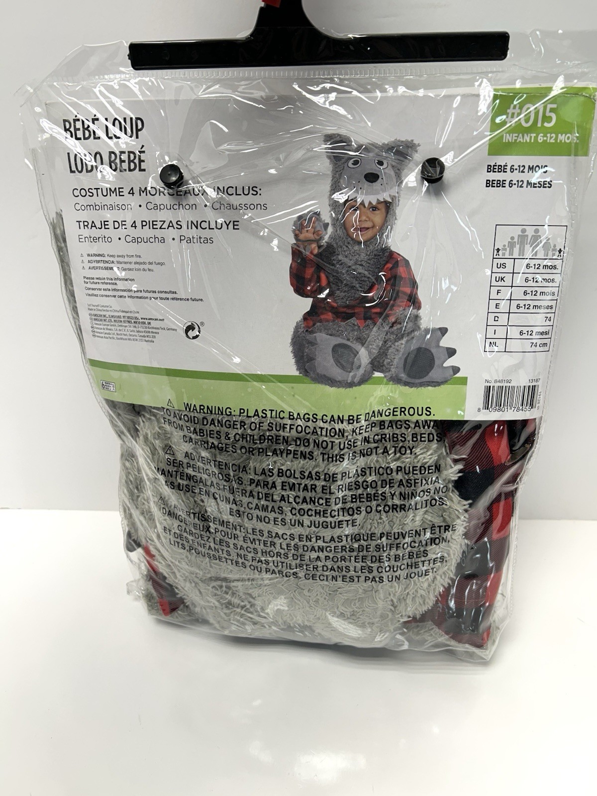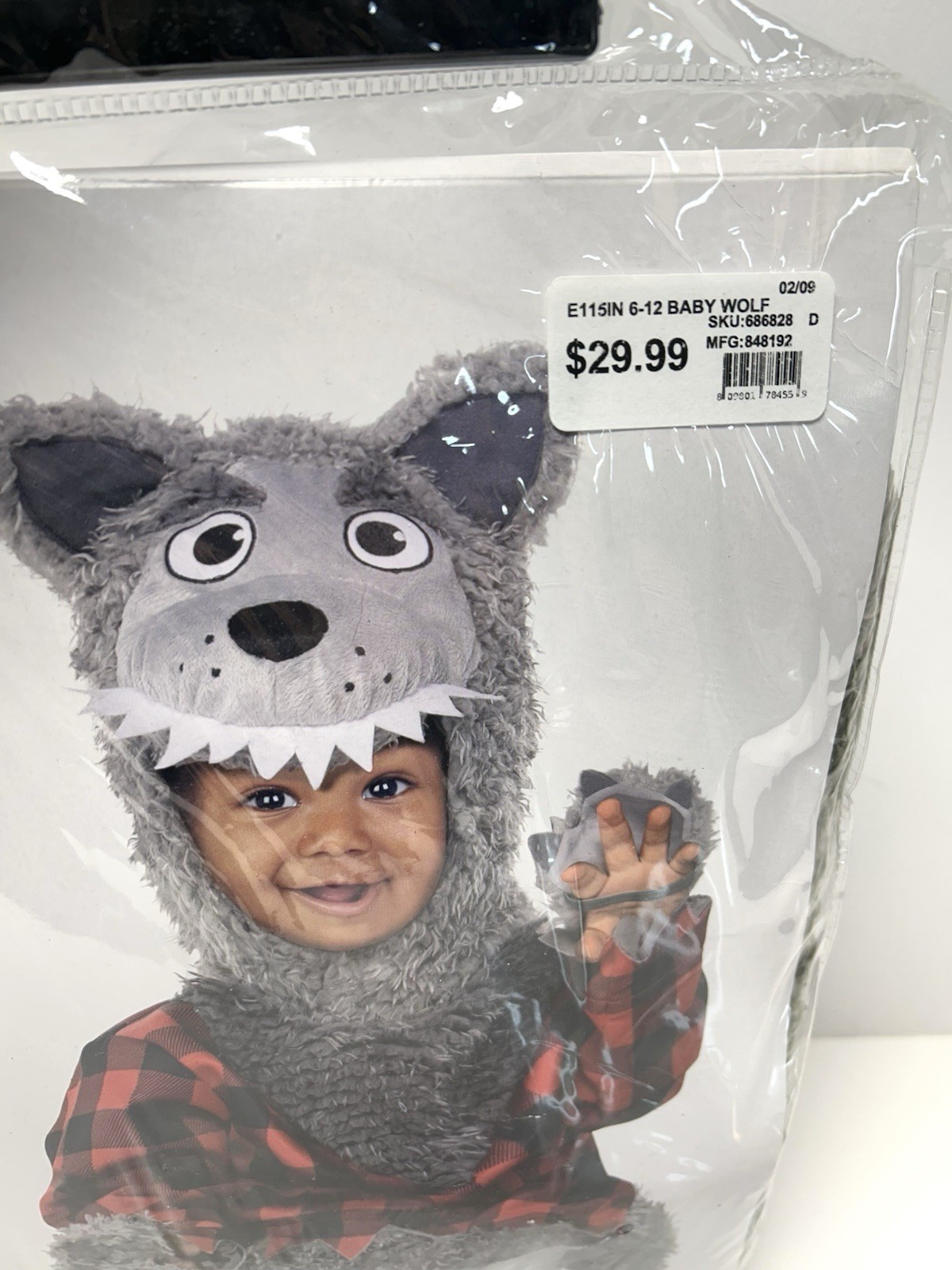 Baby Wolf Halloween Costume Infant Size 6-12M Unisex Hood, Jumpsuit Booties