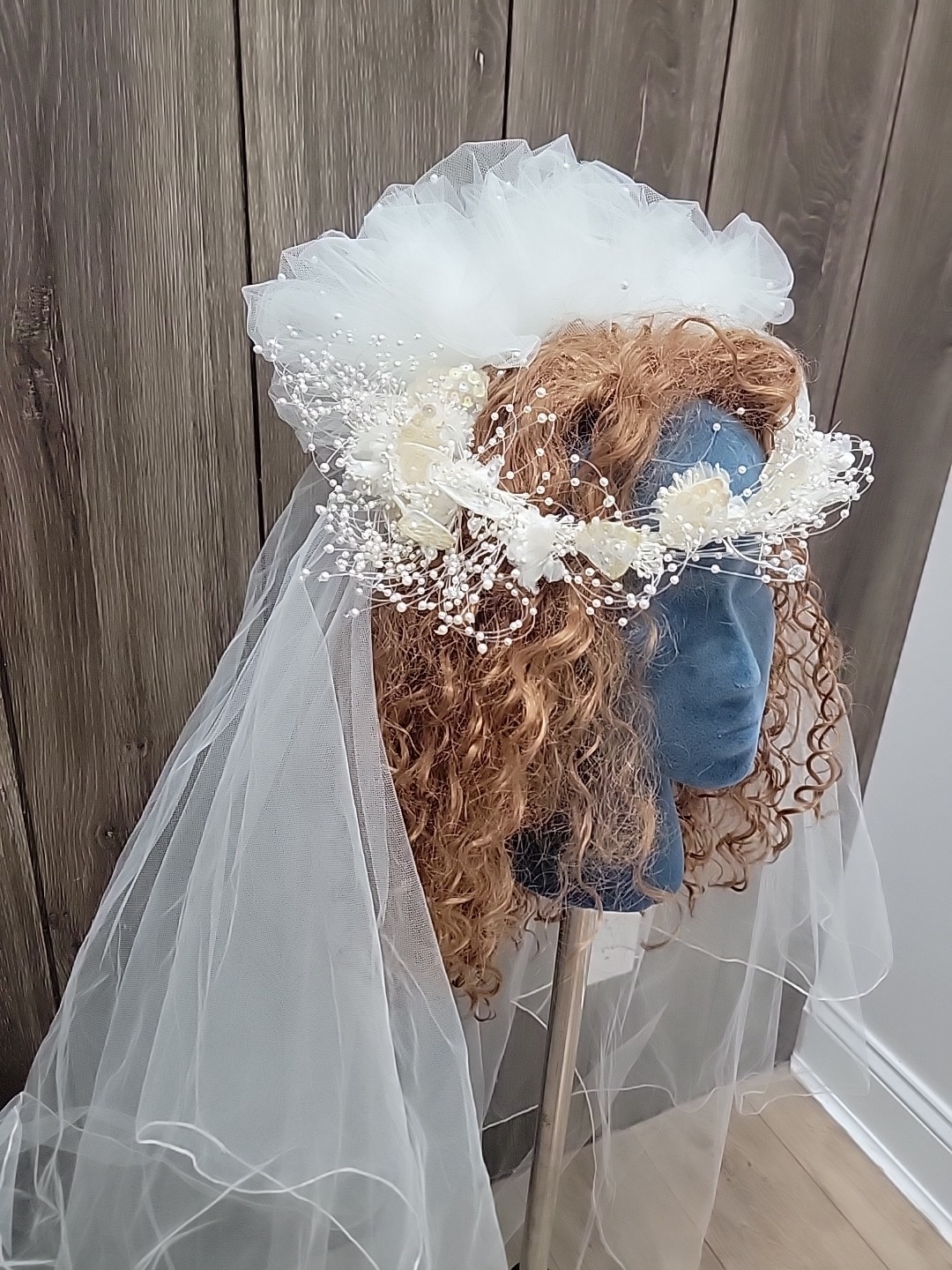 Vintage'80 Wedding Veil Headpieces Beaded Sequins /Floral /2Tiered/Length 44