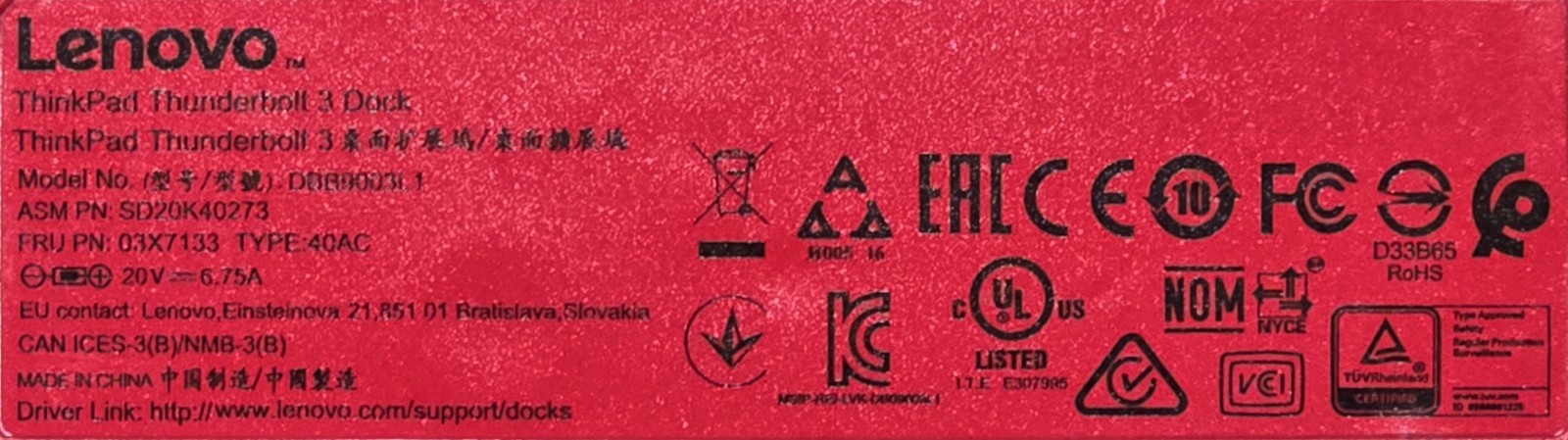 Lenovo ThinkPad Thunderbolt 3 Dock DBB9003L1 / 40AC - 135W