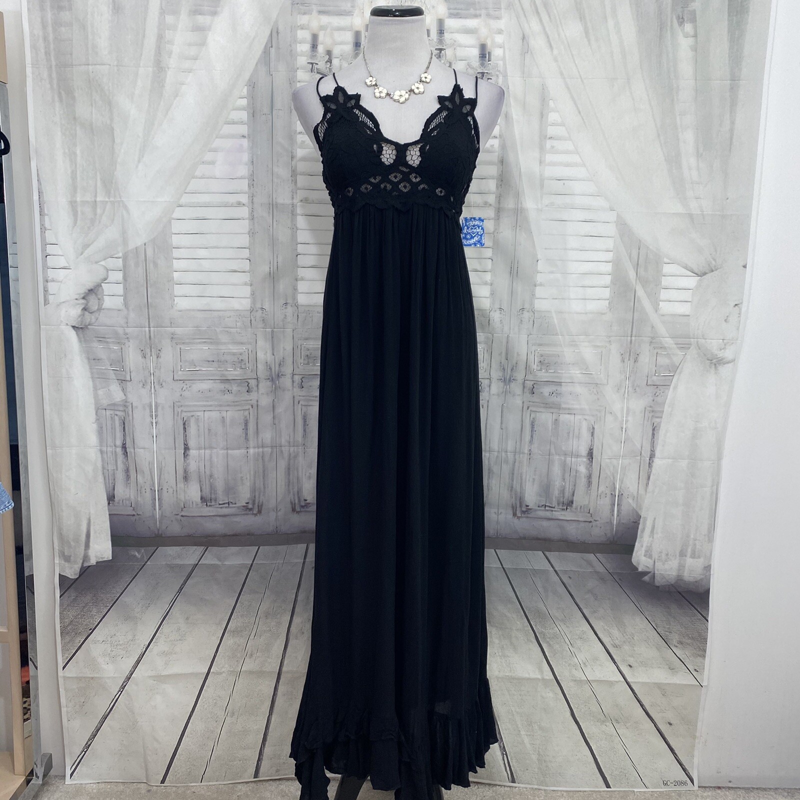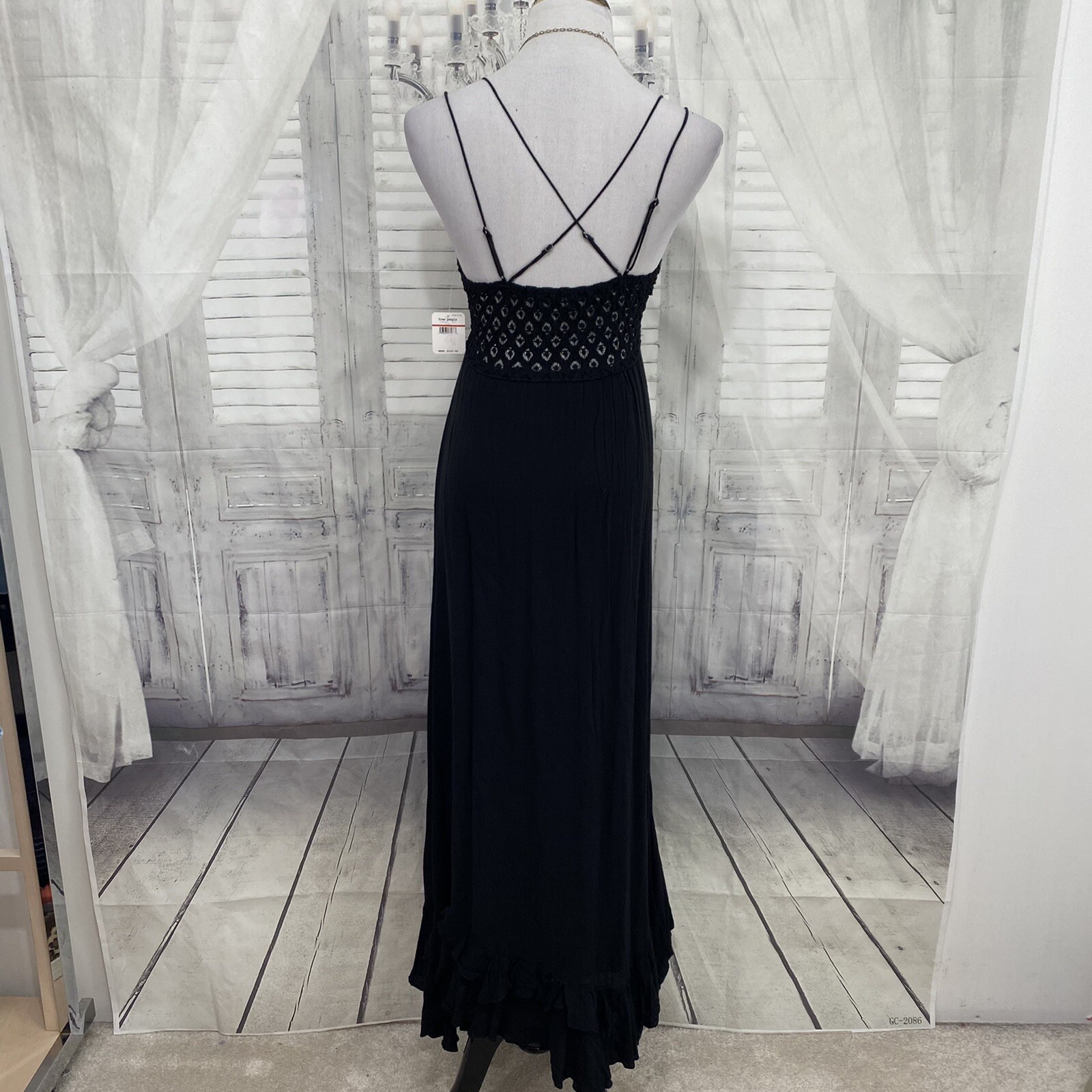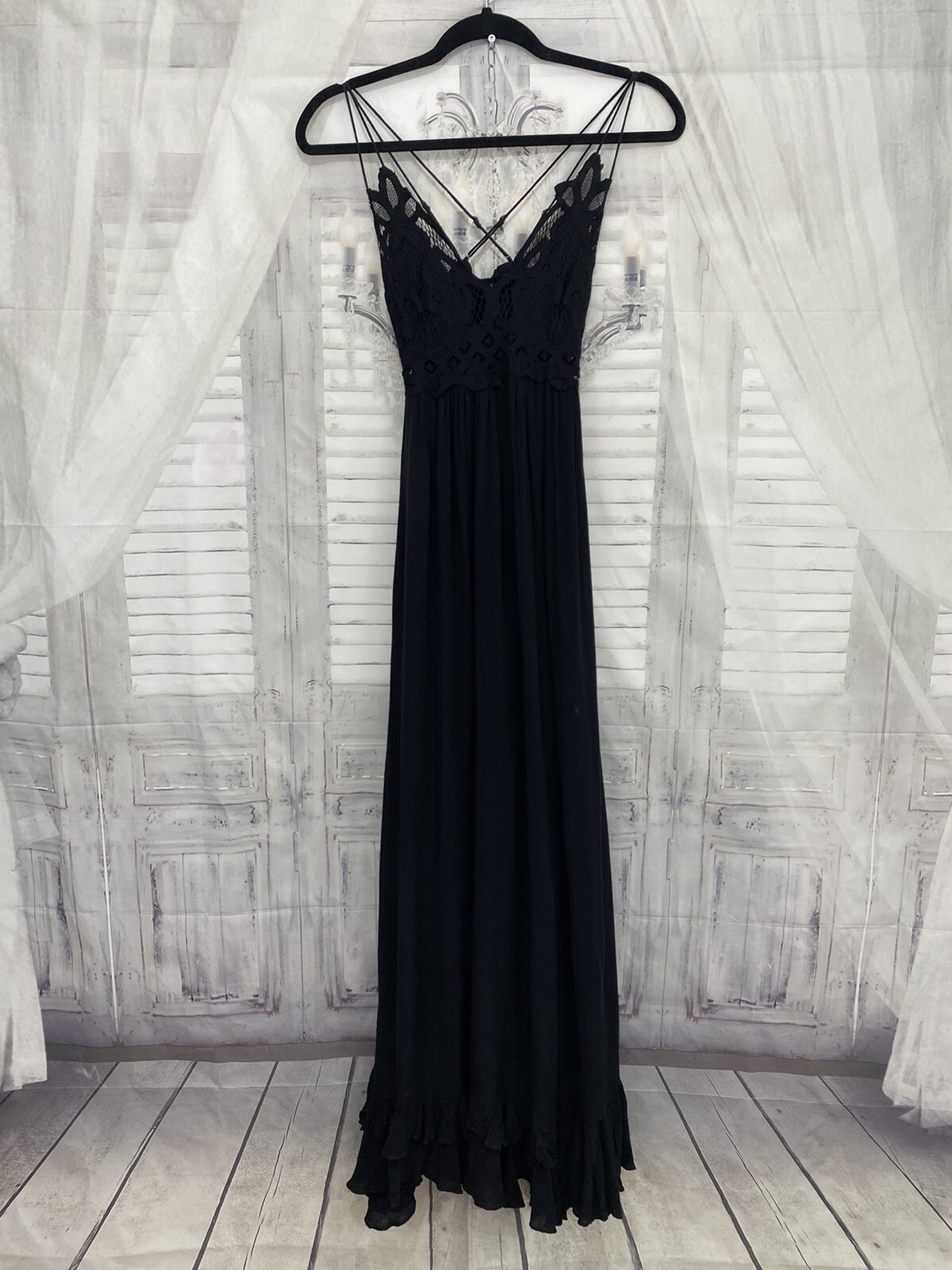 Free People XS Adella Crochet Lace Maxi Slip Dress Black Back Gauze Lined B23
