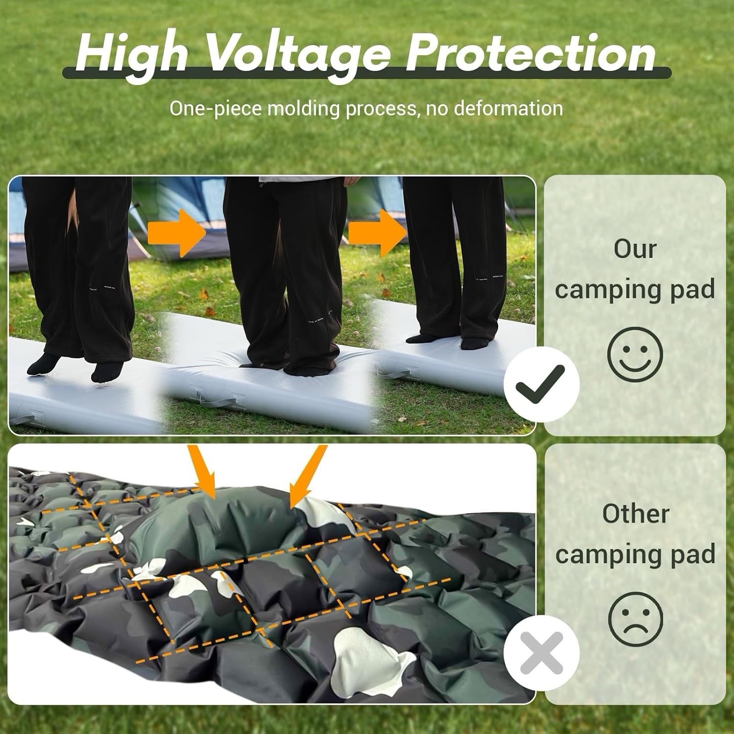 Camping Pad, 3.9 Thick Inflatable Waterproof Mattress, Gray, Durable, 440lb