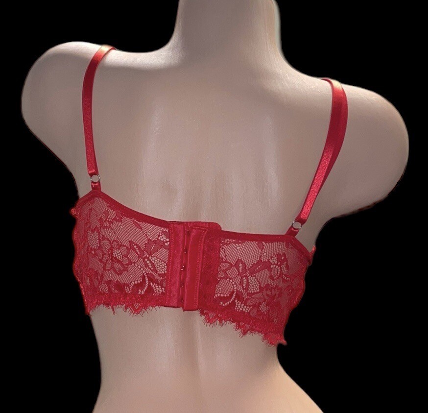 Red Shiny Silky Sheer Lace Bra Bralette Womens M NOS
