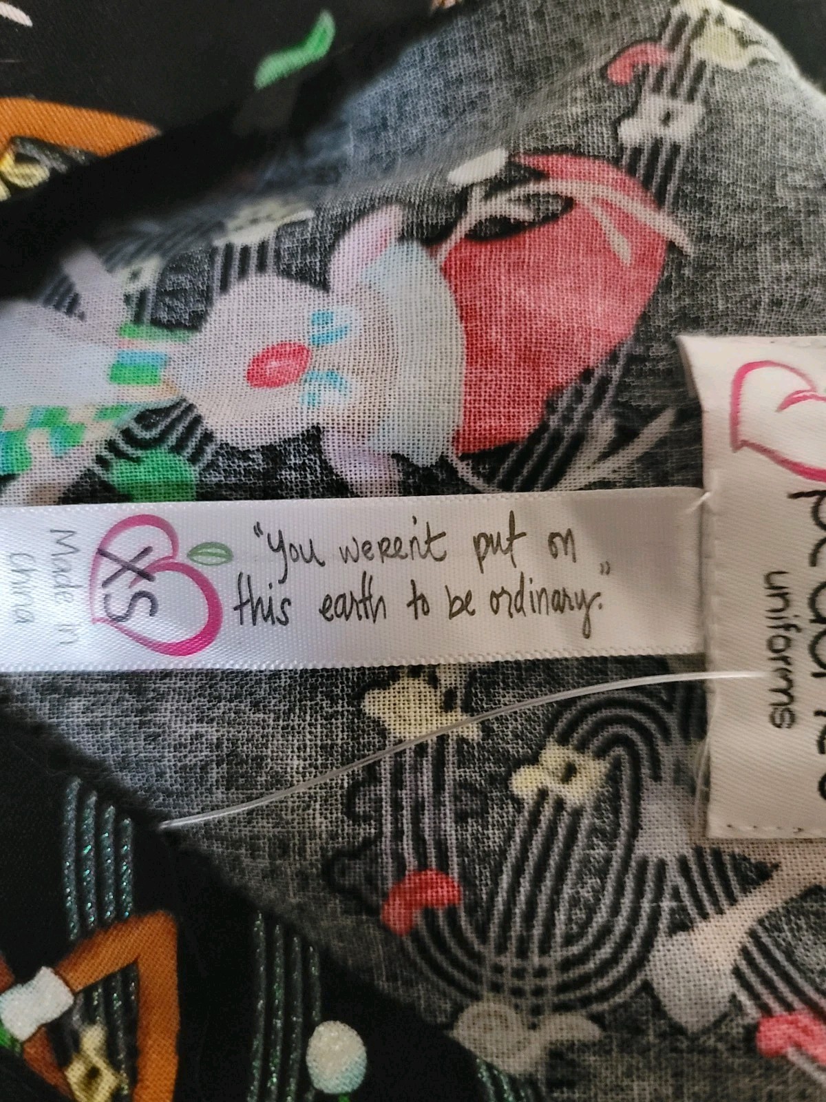 как выглядит Peaches Uniforms Scrub Top Size Small Short Sleeve Christmas Musical Reindeers фото